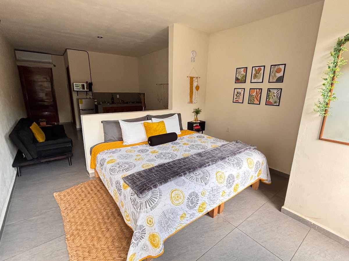 Estudio moderno en el corazón de Cancún, ¡totalmente equipado con servicios increíbles! Disfrutá de una estadía excepcional en este acogedor estudio ubicado en el centro de Cancún, perfecto para viajeros que buscan comodidad, estilo y una ubicación privilegiada. Este espacio está cuidadosamente diseñado para que te sientas como en casa, ya sea que vengas por trabajo, vacaciones o una escapada rápida.