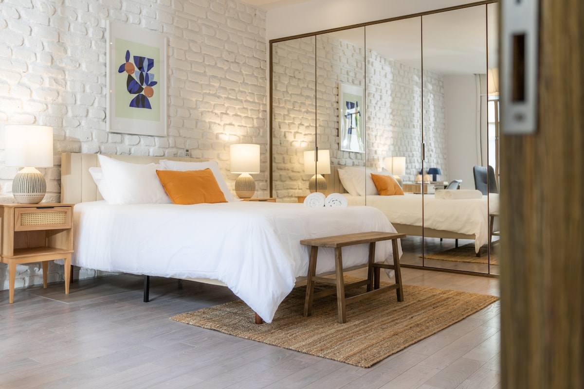 Exuding an air of sophisticated elegance and artistic design. Our suite at Casa Tenue has a harmonious fusion of contemporary and vintage charm, meticulously crafted to cater to the discerning traveler. We aimed to provide a classic view of La Roma neighborhood, one that doesn't want to lose or forget its past. Breakfast included consists of fruit, yogurt, honey, granola, juice, almond milk and coffee