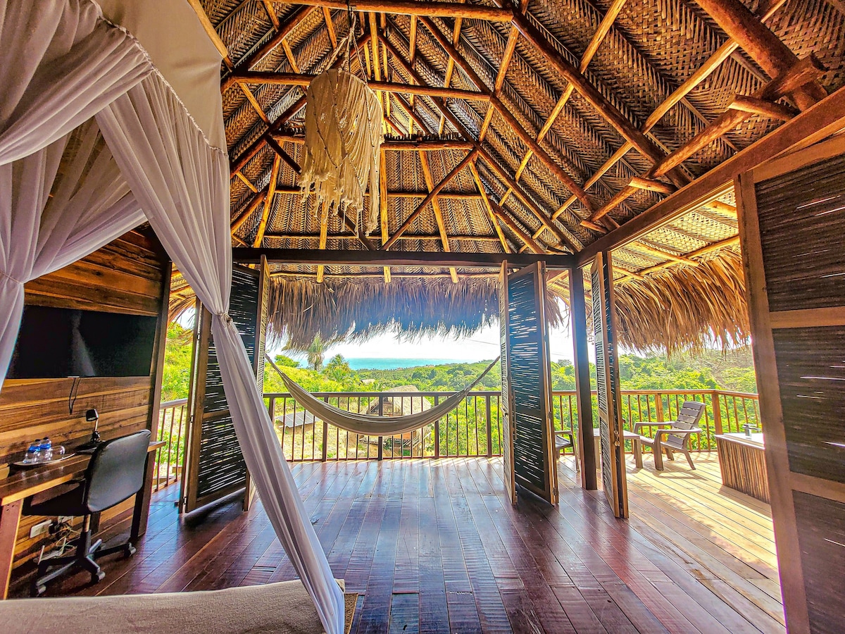 Cabaña Guacamaya con jacuzzi y vista a el mar.