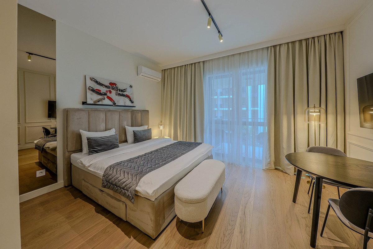 Bienvenido al exquisito apartamento estudio del piso 13 en Belgrade Waterfront, que ofrece fascinantes vistas al río al atardecer y comodidades modernas, a solo 15 minutos a pie de la plaza principal. Este espacio bellamente diseñado combina comodidad, estilo y conveniencia, por lo que es una opción ideal para personas que viajan solas o en pareja que buscan explorar el vibrante corazón de Belgrado.