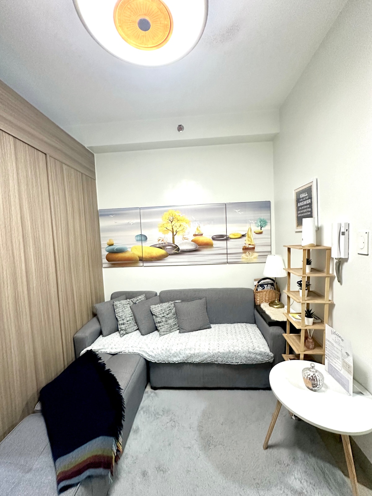 🌟 LOCATION LOCATION LOCATION 🏃♀️Closest Condo to MOA (5-Min Walk) ❤️Quality stay w/ experienced hosts 😻32 sqm (344 sq ft) space 🛏️ Premium hotel-quality bed & linens for a restful sleep 🛁 Plush towels & essential toiletries 🧺 In-unit washer & dryer 🍽️ Complete Kitchen & cooking essentials 📺 Smart TV, reliable 100 mbps Wi-Fi, air conditioner 🏊♂️ Access to swimming pools 🛌 Accommodates 2-4 guests 1 Premium Full Double-sized bed (54×75 inches) 1 Double-sized Sofa bed
