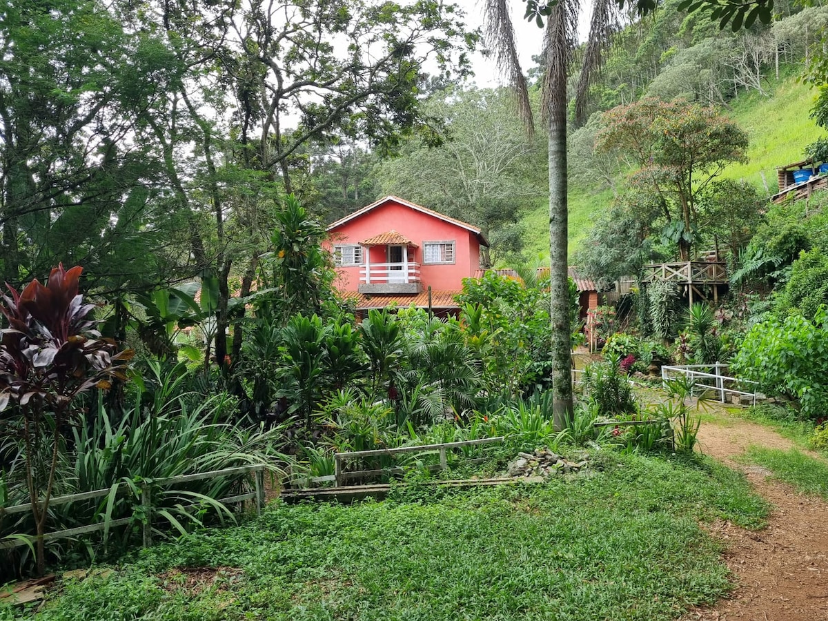 ¡Bienvenido a nuestro refugio en la Mata Atlántica! Disfrute de una estancia única en nuestro encantador chalet, rodeado de la exuberante naturaleza de la Mata Atlántica. Ubicado en un entorno idílico, nuestro espacio ofrece el refugio perfecto para quienes buscan tranquilidad y comodidad. Contamos con un jardín con río privado donde podrá relajarse con el sonido del río, ideal para momentos de meditación y contemplación. Disfrute de un baño relajante en nuestro jacuzzi 🛀🏻o caliéntese en la sauna después de un día explorando los senderos.
