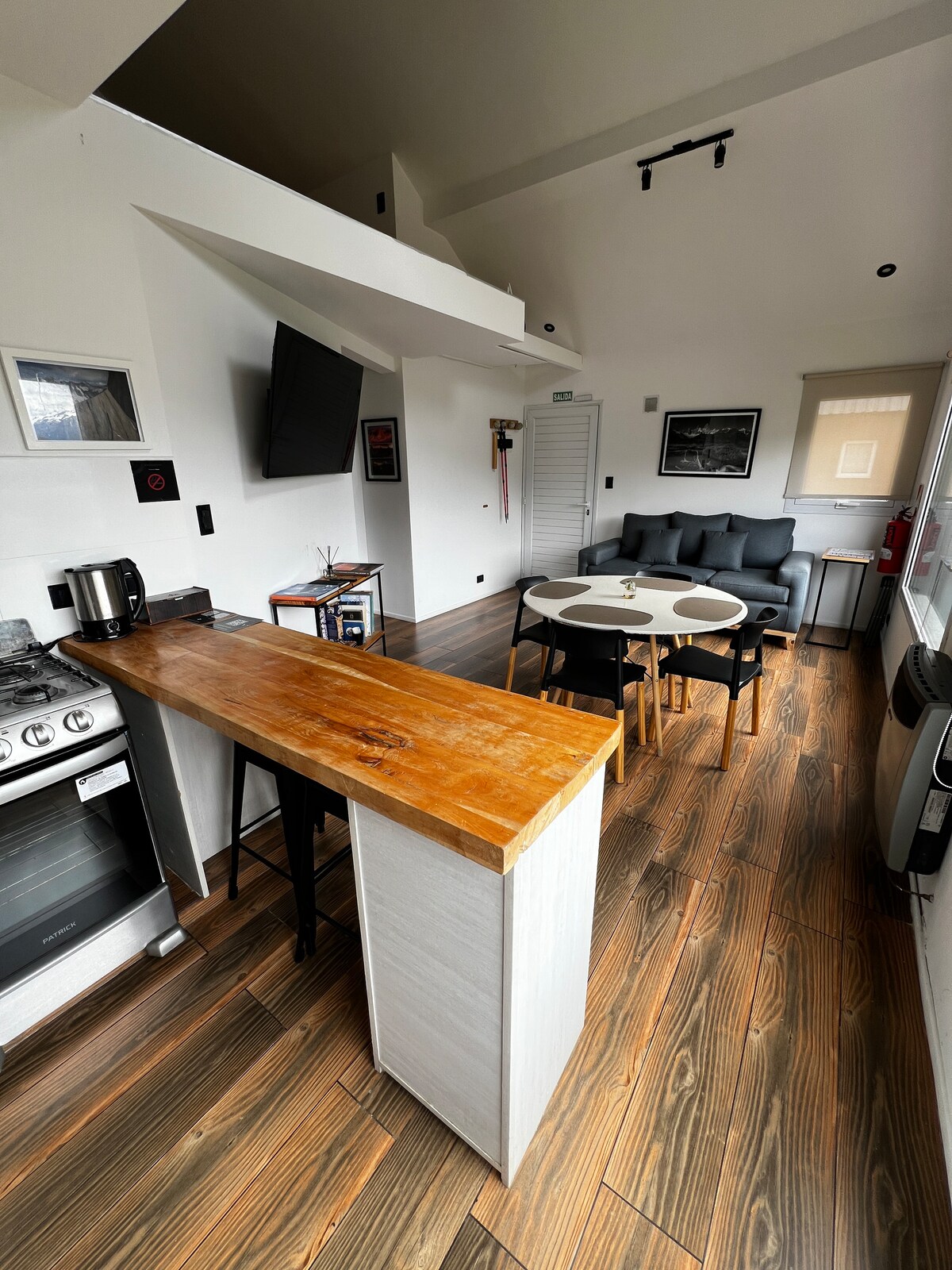 Nuestro loft, es un container reciclado y acondicionado con todas las comodidades de una casa. Está ubicado a unas 12 cuadras del Centro Cívico de Bariloche, rodeado de un bosque de cipreses y radales con un lindo jardín donde hay un chulengo donde hacer asados. El barrio es muy tranquilo, residencial, hay una pequeña plaza a media cuadra. Cuenta con todos los servicios básicos para una cómoda estadía. Hay un amplio espacio donde estacionar.