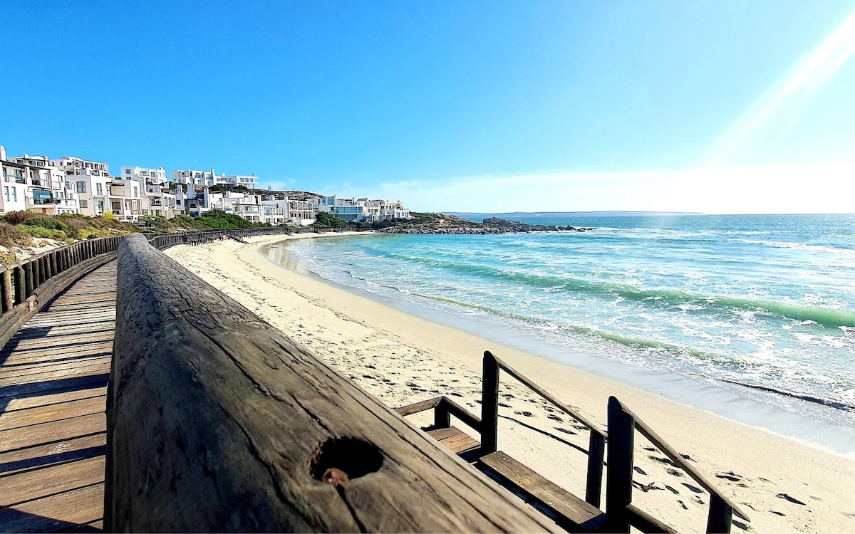 Well appointed beachfront ground floor apartment on the beach. Located in an estate with uninterrupted views. One bedroom open plan studio apartment in a block that is situated directly on the beachfront.The apartment patio is entirely shielded from the south-easter wind and perfect for sundowners or a braai.Walk around the apartment and down the steps and you are on the best secluded beach in Langebaan. Perfect as a base to explore the beaches, restaurants and activities in the area.