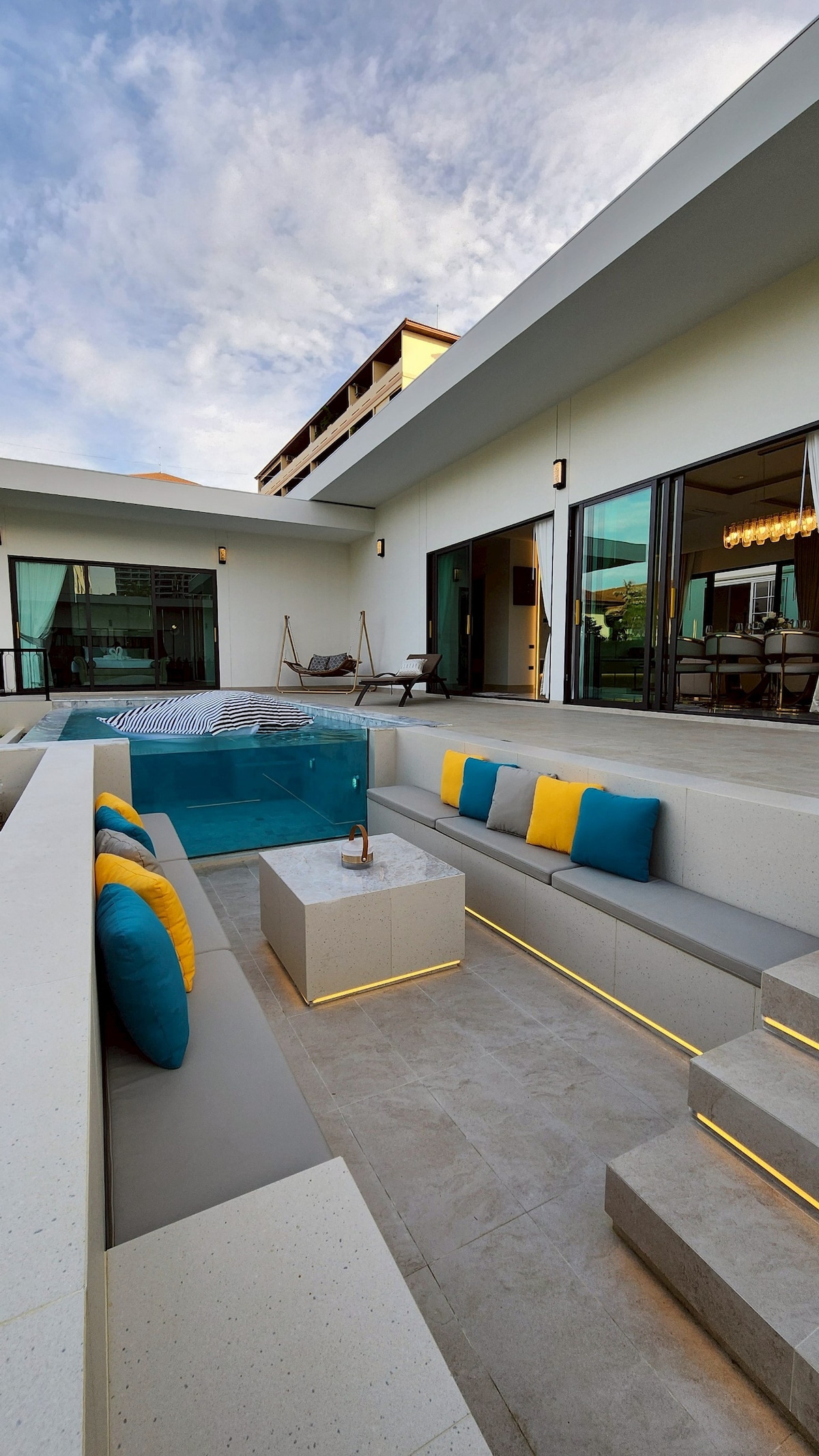 「不要再忙了,你就开始有生活美学」 「Don’t be busy anymore, you will start to have a life aesthetic」 欢迎来到“Aura Villa”,适合您与家人、朋友度假的私人别墅。 独栋villa建筑,为您提供最大可能的安全与私密 城市症候群需要美好「别处」,需要彻底的松弛与纵情 消融陌生社交距离,以家庭或朋友为单位,提供整租服务 给与您融于异域风土的真正沉浸 让植被、阳光、海风与民宿场景无限交融,共同组成Aura Villa的空间故事 · 私人读懂了别墅 · 私人游泳池 · 4间卧室4间卫生间 · 主卧按摩浴缸 · 4 -12人 · 私人游泳池 · 厨房 · 可停3辆车 · 免费电费+水+高速无线网络 · 可额外加床 地点: 芭堤雅市中心 · 步行5分钟即可抵达7-11便利店、餐厅、生鲜市场 · 开车10分钟即可抵达步行街、海滩、购物中心