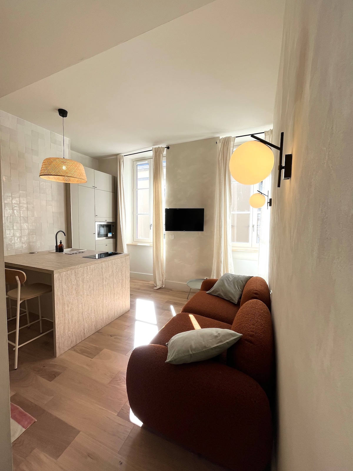 Situado en el corazón de Pau, cerca de todos los comercios, en el primer piso de un pequeño edificio del siglo XIX, el apartamento consta de una bonita cocina abierta, totalmente equipada para comer. Acogedor salón con un gran sofá cama, TV panorámica y zona de escritorio. Bonita habitación, cama queen size, vestidor. Cuarto de baño e inodoro separados. Orientado al sur, disfrutarás de unas vistas impresionantes de los jardines ocultos del centro histórico de Pau. Apartamento para no fumadores, ni siquiera en el balcón.