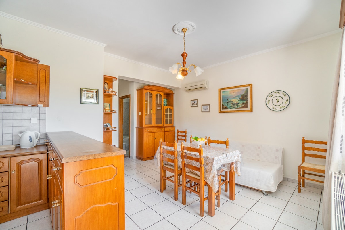 Dora 's Place se encuentra en Gaios, la capital de la isla de Paxos. Se encuentra a 2-3 minutos a pie de la plaza principal de Gaios y una plétora de restaurantes, tiendas, supermercados y otros servicios. El espacio abierto alrededor del apartamento le da una sensación espaciosa y luminosa que te ayudará a sentirte como en casa. Podrá disfrutar de su café y desayuno en el balcón, mientras que la espaciosa cocina le proporcionará todo el equipo necesario durante su estancia. ¡No dudes en enviar una consulta para obtener más información!