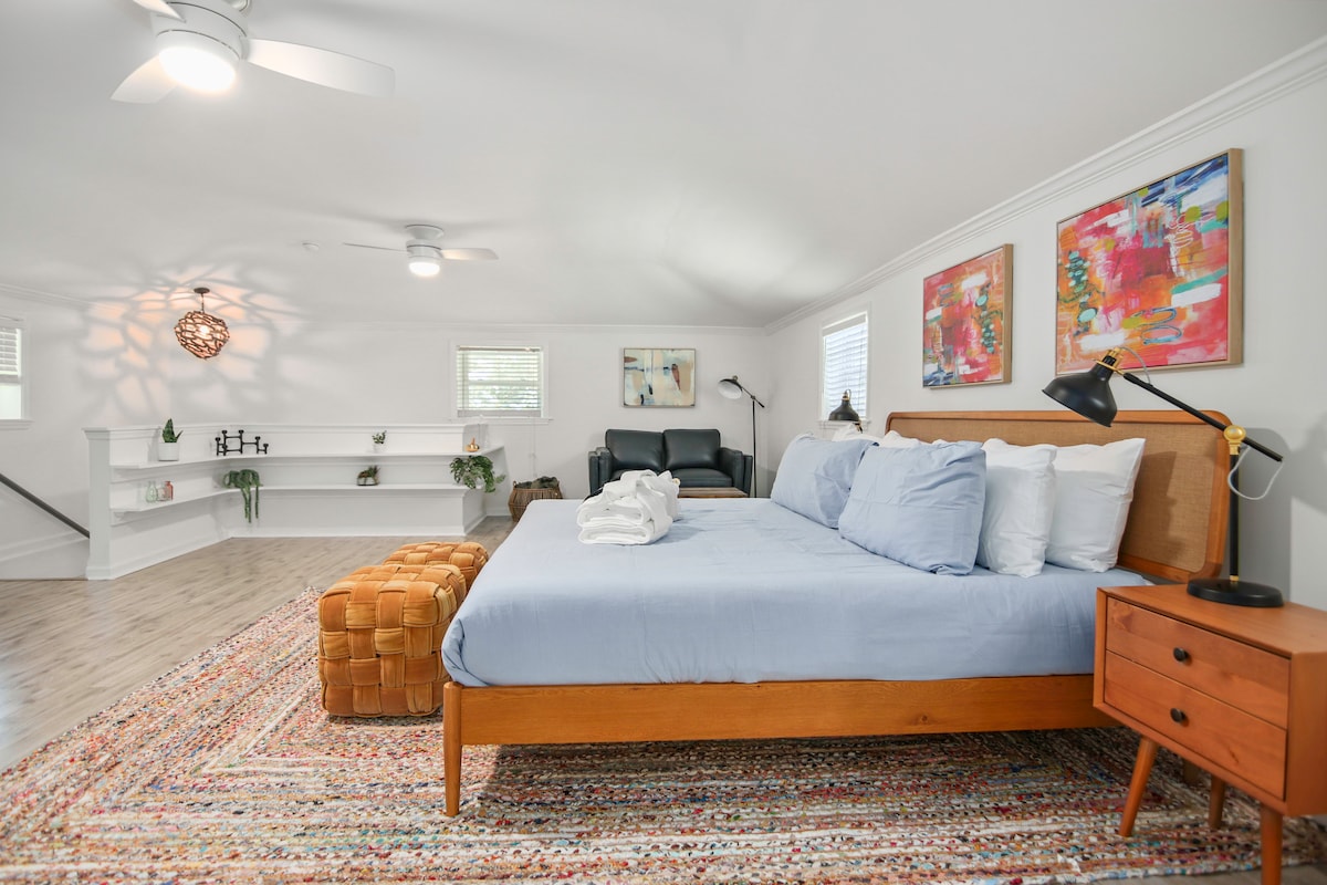 El loft de lujo es perfecto para una persona o una pareja. El elegante loft con ambiente surfero está adyacente a la casa principal con una entrada independiente. Situado a 2 millas de Folly Beach, a poca distancia a pie de una tienda de comestibles y a 20 minutos del centro de Charleston. Amplia ducha, cocina con placa eléctrica, horno de convección, microondas, cafetera y licuadora. Cuenta con wifi y televisión inteligente con aire acondicionado de unidad dividida. Plaza de aparcamiento fuera de la calle para uno y una plaza de aparcamiento en la calle. Ambiente playero sin multitudes.