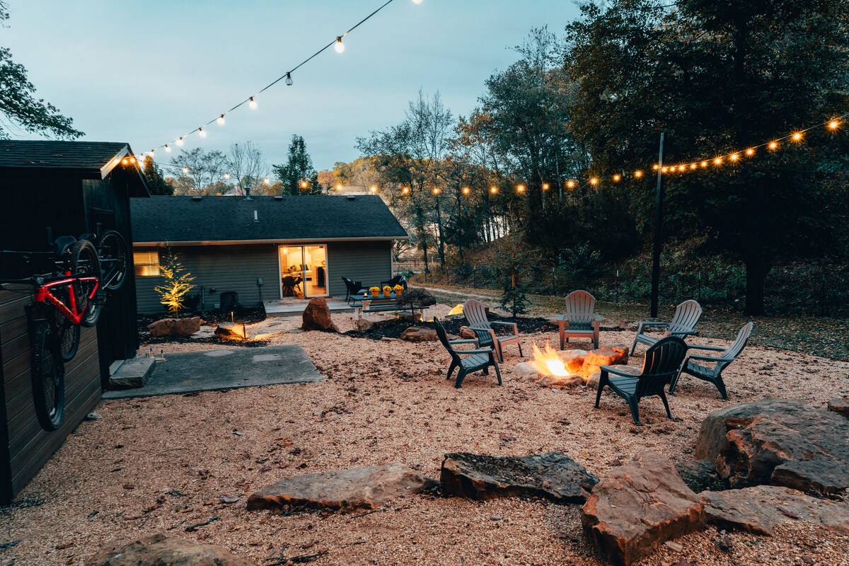 Si estás de visita para el senderismo, correr, grava, golf o buscas relajarte en el bosque, los lugareños te dirán que este lugar será difícil de superar. Mulligan Trail está al otro lado de la calle y tu propio conector de sendero privado al Back 40 Loop detrás de la casa. Paraíso de una sola pista, acres de privacidad y a minutos de todo Bentonville. Solo hay 2 casas en la calle; somos dueños del lote entre ellas... de aproximadamente un acre, con acres de bosques detrás. Monta, desconecta, relájate, repite. Insta: OZSHREDDERS 🤘