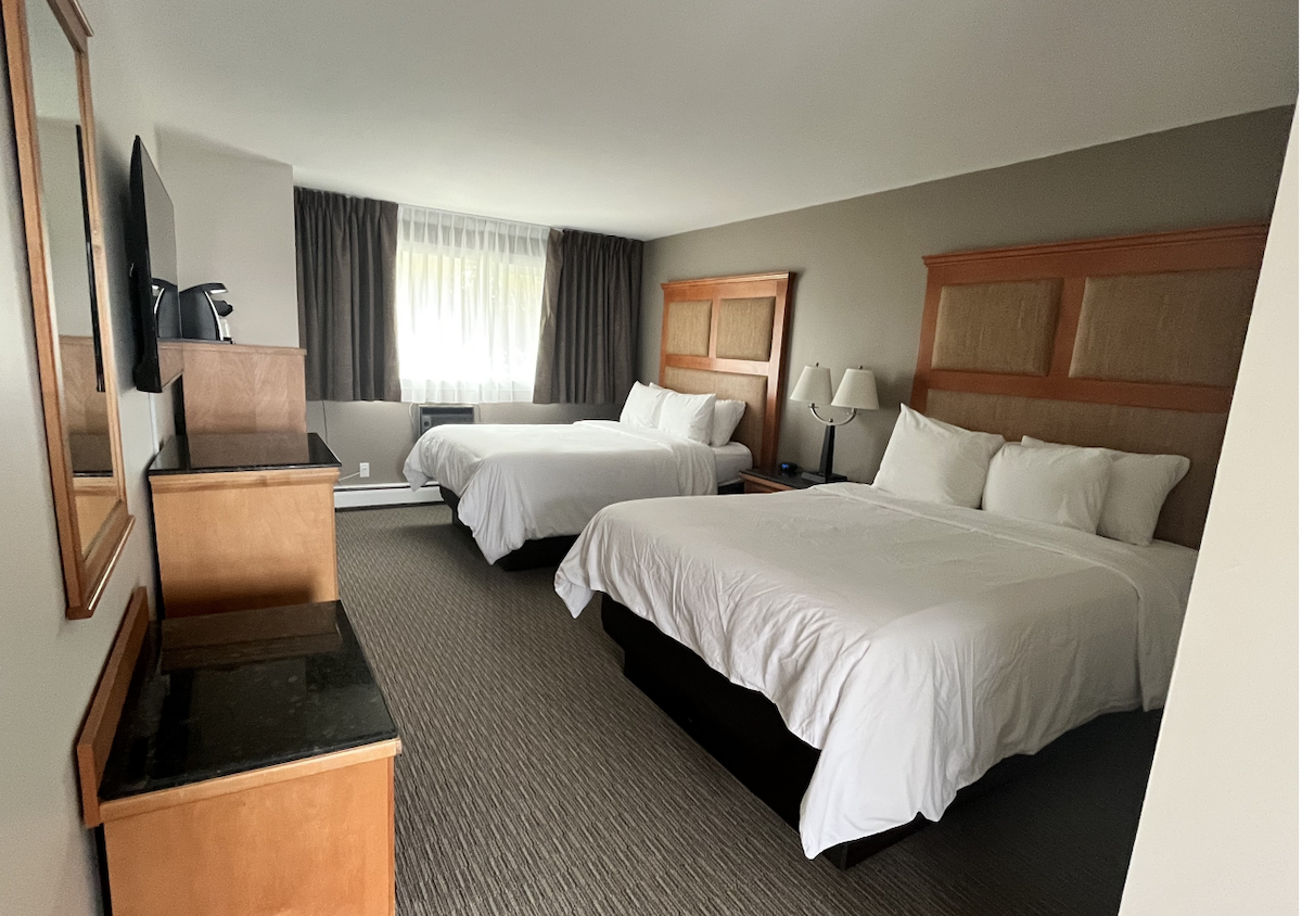 Enjoy a comfortable and convenient stay at our Howard Johnson hotel, featuring a spacious room with two queen beds. Start your day right with a complimentary hot-served breakfast, offering a variety of tasty options. Stay active during your visit with access to our on-site gym. We also welcome your furry friends, as pet-friendly rooms are available upon request. Whether you're traveling for business or leisure, our hotel provides a relaxing and accommodating environment for all guests.