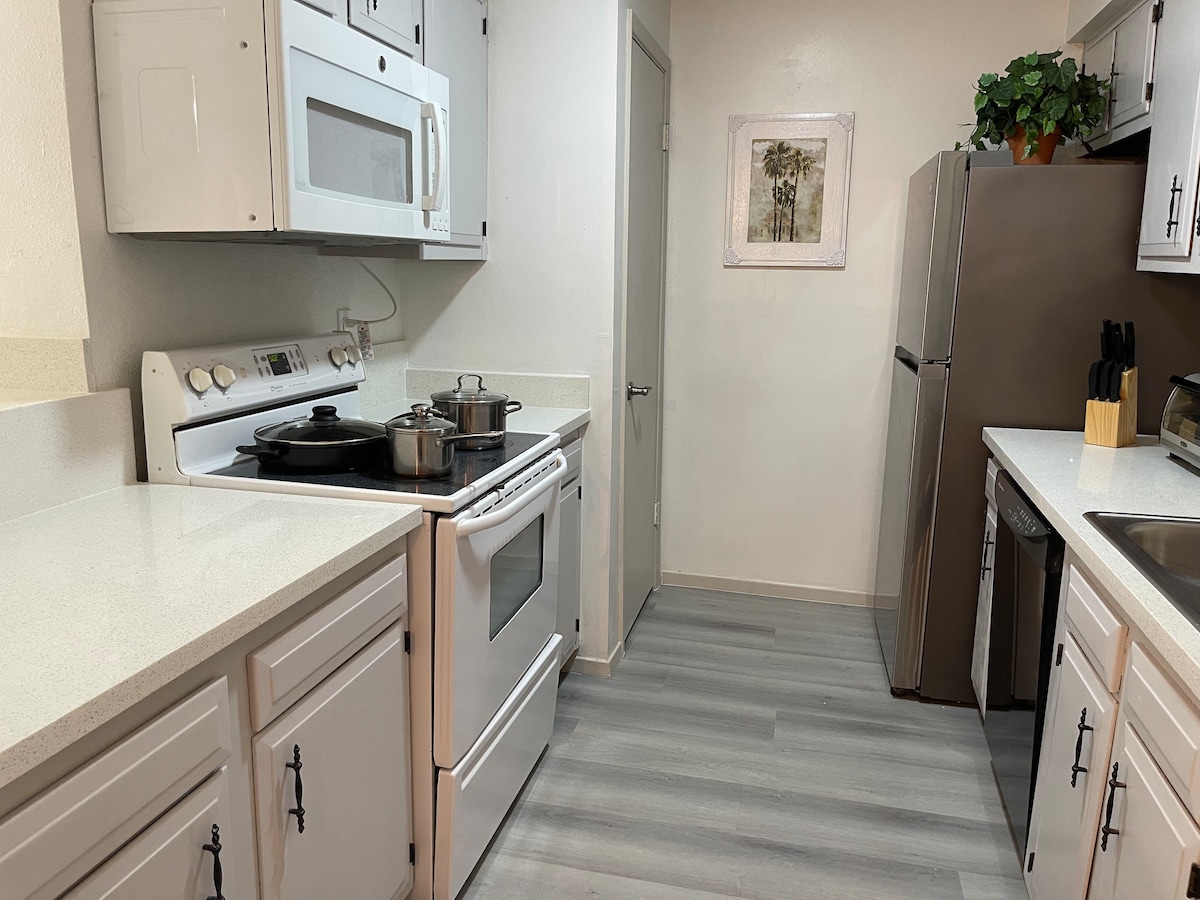 Este apartamento de 1 dormitorio totalmente privado te ofrece todo lo que necesitas para tu hogar lejos de casa. Lavadora y secadora en la casa, así como una cocina totalmente equipada con ollas, sartenes y sí, incluso una cafetera. Relájate con dos televisores de pantalla plana ubicados en la sala de estar y el dormitorio para una relajación óptima. Además, este espacio se encuentra entre las autopistas 288 y 35, ideal para un viaje rápido a lugares de interés como Pearland Town Center y Baybrook Mall.