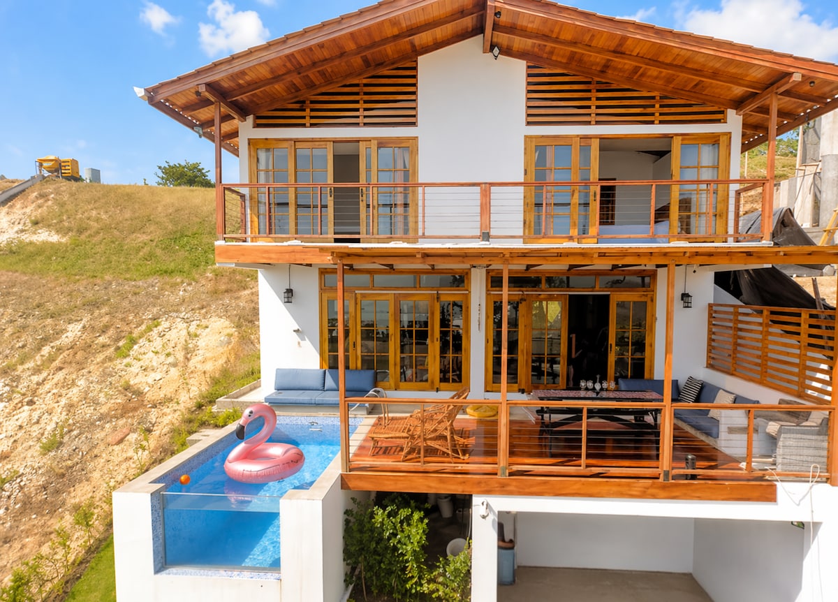 Nuestra villa de lujo con impresionantes vistas al mar es perfecta para disfrutar en familia, amigos o en pareja. Vistas panorámicas: Relájate en la terraza privada y contempla atardeceres inolvidables. Piscina infinita: Sumérgete en nuestra piscina temperada de borde infinito rodeada de jardines internos y un paisaje tropical. Cocina equipada: Prepara tus platillos favoritos con electrodomésticos de alta gama o cena al aire libre con el sonido de las olas.