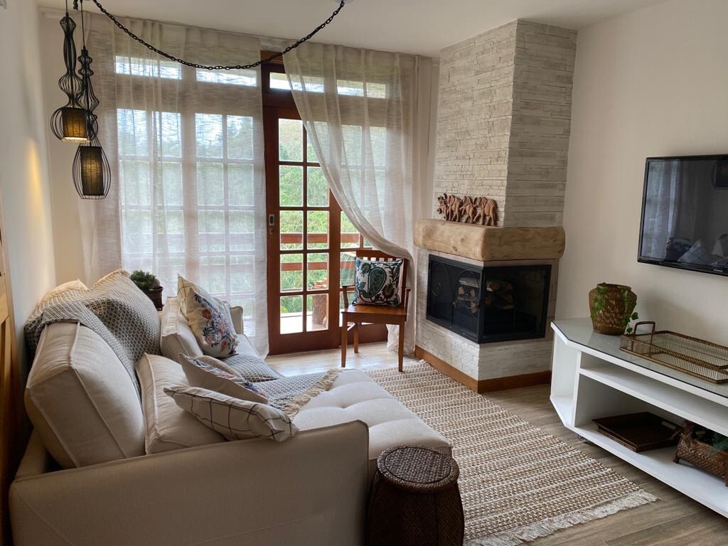 Refúgio charmoso na serra para casais e familias (até 5 hóspedes), em condomínio fechado, portaria 24h, próximo ao centro. Casa aconchegante, com decoração rústica e lazer privativo: jacuzzi com TV, mesa de bilhar e área gourmet com forno a lenha e churrasqueira. O anfitrião é Chef de cozinha e oferece, mediante combinação, fondue de carnes ou jantar à luz de velas 🍷. 🌱 Sustentabilidade com horta orgânica. ⚠️ Área de lazer do condomínio não permitida. Host fala italiano fluente nativo 🇮🇹
