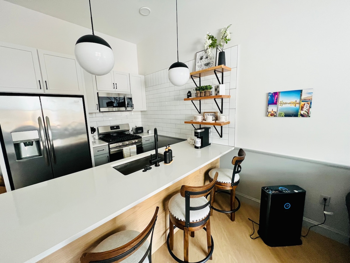 Tanto si viajas por negocios, como si eres un viajero aventurero o simplemente buscas una escapada de fin de semana, el loft tiene todo lo que estás buscando. El loft cuenta con: • Una cocina totalmente equipada. • Una cómoda y acogedora sala de estar con un televisor inteligente de 55 pulgadas. • Una cama tamaño queen con colchón de la marca Puffy. • una ducha principal con cabezales de rociado multidireccionales y el mejor cabezal de ducha de efecto lluvia • y la mejor terraza privada en la azotea con mesa al aire libre, asientos y chimenea.