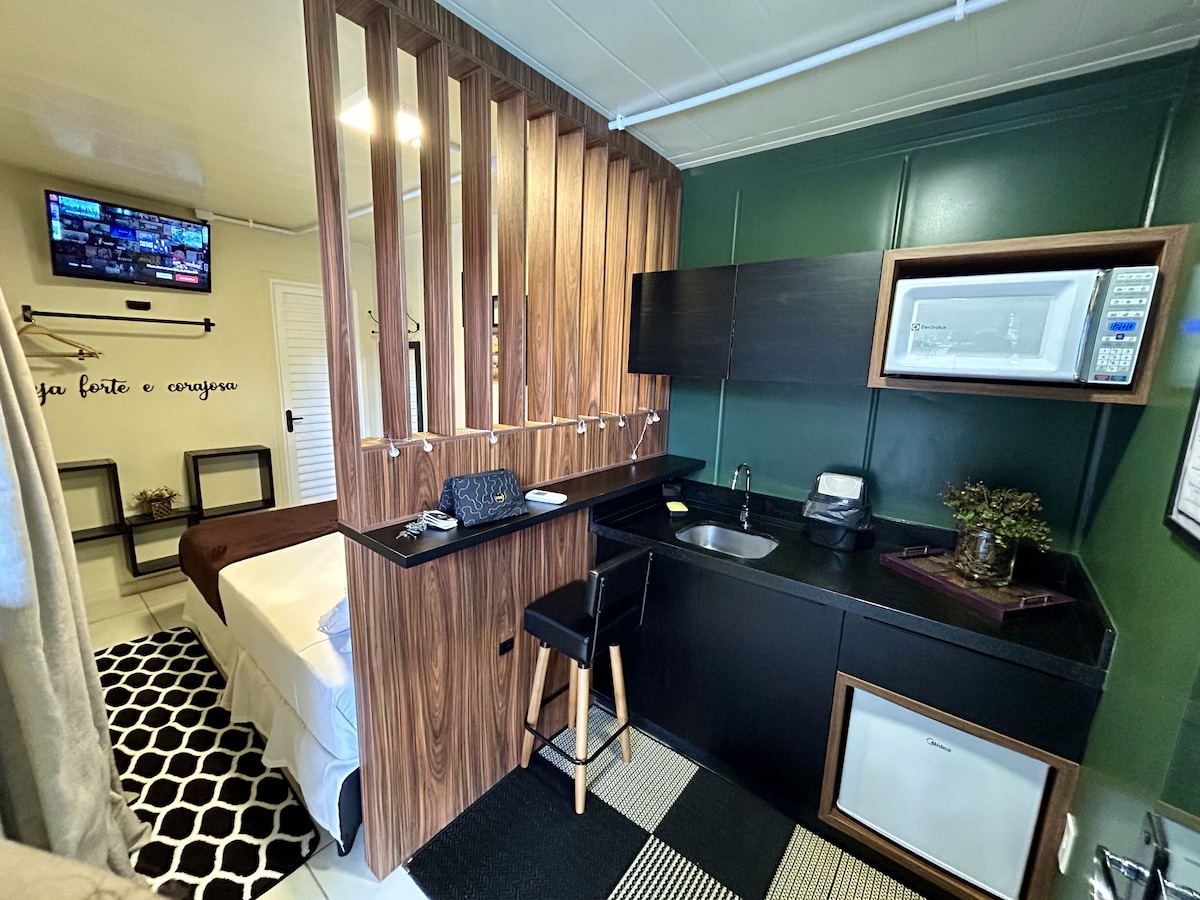 Una escapada encantadora para parejas que buscan una experiencia diferenciada: 🌅 ¡Con balcón privado y en el segundo piso! Caja de 💤 cama para un descanso refrescante 🍽 Desayuno completo incluido Televisión 📺 inteligente con más de 40 canales abiertos, minibar y aire acondicionado 🚿 Amplio baño privado 📍 A pocos metros de la diversión: 🏰 650 m de Beto Carrero 🌊 A 400 metros de la playa de Armação 🛒 100 millones de mercados y restaurantes ¡Reserva ahora y disfruta de esta acogedora escapada!