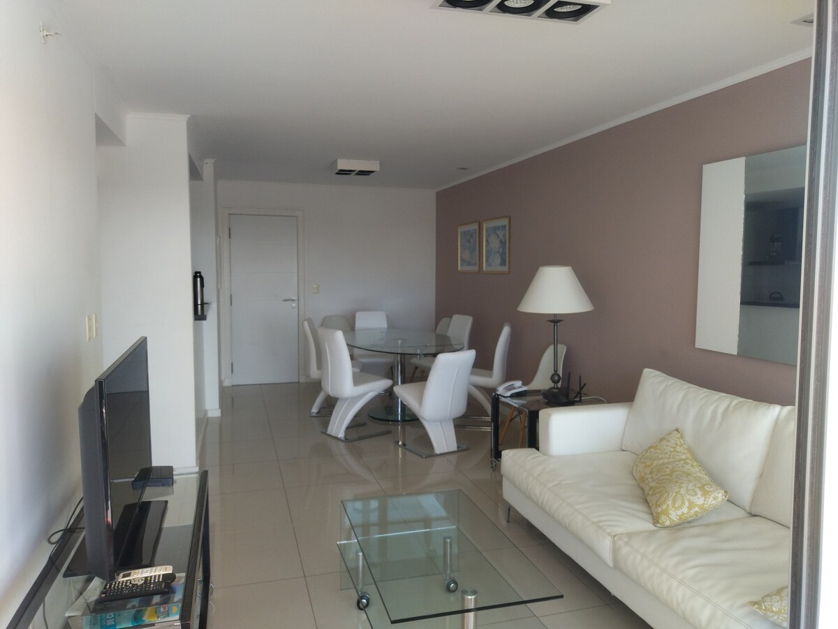 Piso 18, 3 habitaciones (6 personas) , 2 en suite, 4 baños, una cochera cubierta (menos 1,855 metros de ancho), tv x cable, internet, ropa blanca (se cambia 1 vez x semana) , aire frio/calor en todos los ambientes, servicio de mucamas y vista al mar desde todos los ambientes!