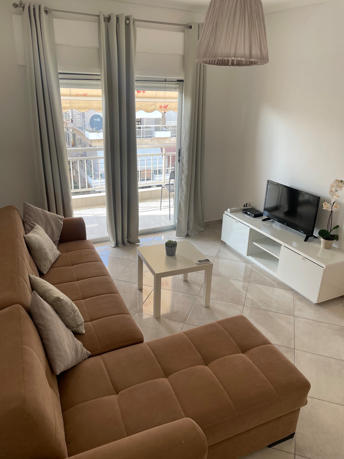 Nice apartment with 2 bedrooms ,one living room with a kitchen fully equipped and a really big balcony. Close to the sea ,like 150-200 meters. It is 10 minutes away from the airport Makedonia and 30 minutes from the city centre.You will have your own parking space if you have a car.