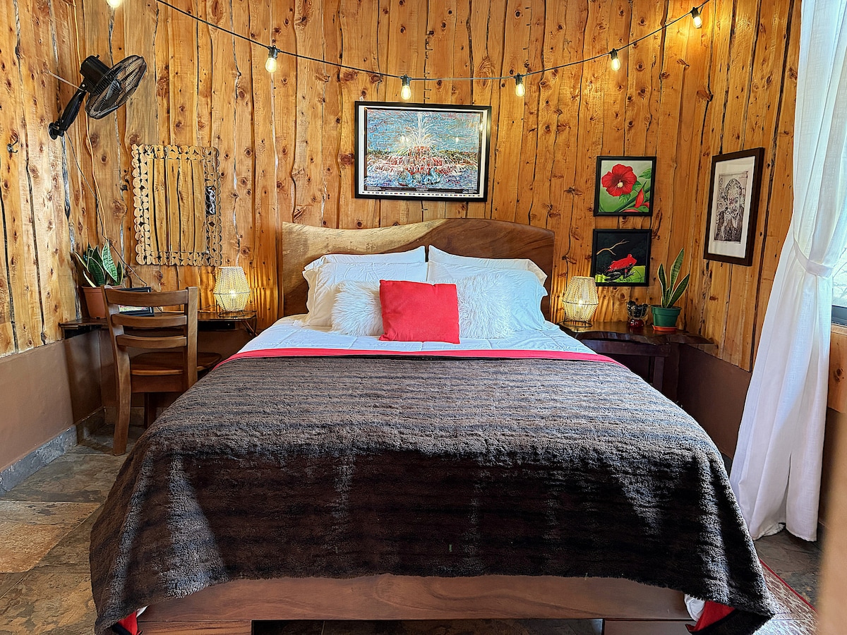 ¿Estás buscando un lugar limpio y económico para alojarte cerca de los senderos en los picos más altos de Costa Rica? Elegí esta habitación privada en Casa Colibri Chirripo. La habitación tiene espacio de escritorio y su propio baño con ducha con agua caliente, una hermosa cocina compartida, espacios de comedor interiores y exteriores, acceso privado a Chispa Creek con un fogón junto al agua. ¿Vas a traer a tu familia y amistades? ¡Consultá nuestros otros anuncios o nuestro sitio para reservar literas, habitaciones privadas o toda la cabaña!
