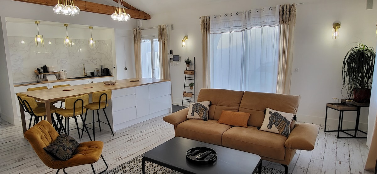 Située à Lagord, la Maison MA’ est une élégante demeure d’inspiration méditerranéenne 🏡 construite en 2022. Nichée dans un cadre naturel aux accents rochelais 🌿, elle a été pensée pour accueillir familles et amis dans une atmosphère chaleureuse 🤗. Alliant avec finesse l’authenticité de La Rochelle 🏛️ à un confort contemporain ✨, elle offre des prestations raffinées pour une expérience sereine et inoubliable.