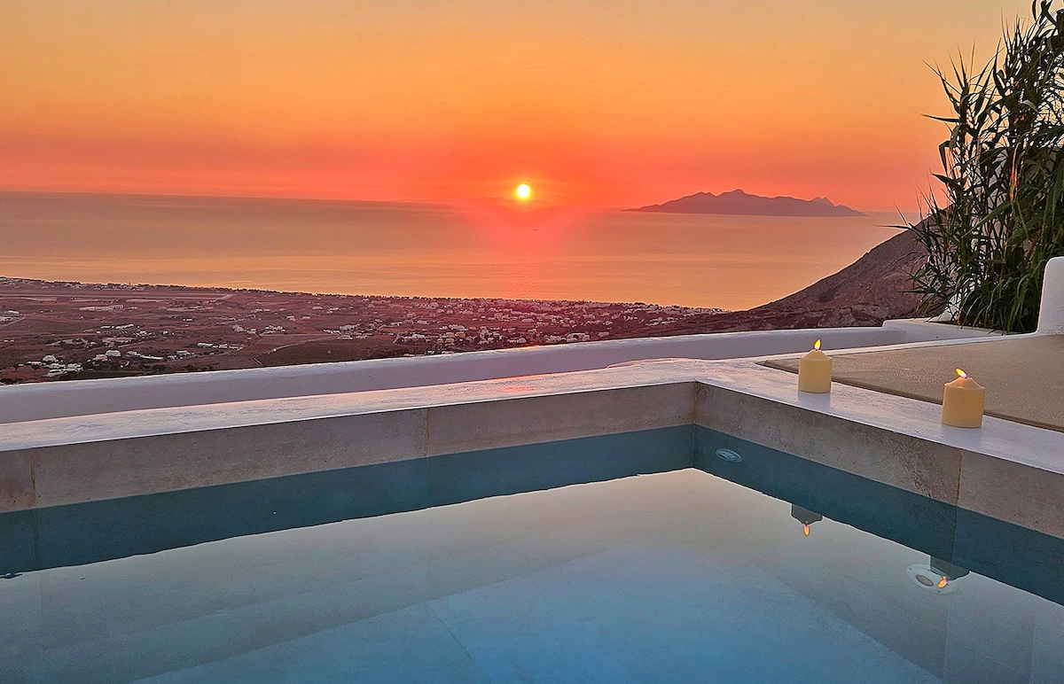Situado en el tradicional pueblo de Pyrgos Kallistis, el corazón de la isla de Santorini, mi alojamiento ofrece una impresionante vista panorámica del amanecer y del mar Egeo. La villa de 130 m² ofrece lujo, privacidad, fácil acceso y comodidad en estilo cicládico combinado con diseño y decoración modernos. ¡Nuestra nueva piscina infinita es imprescindible! Ten en cuenta que la piscina solo está disponible durante la temporada de primavera y verano, del 15 de marzo al 31 de octubre.