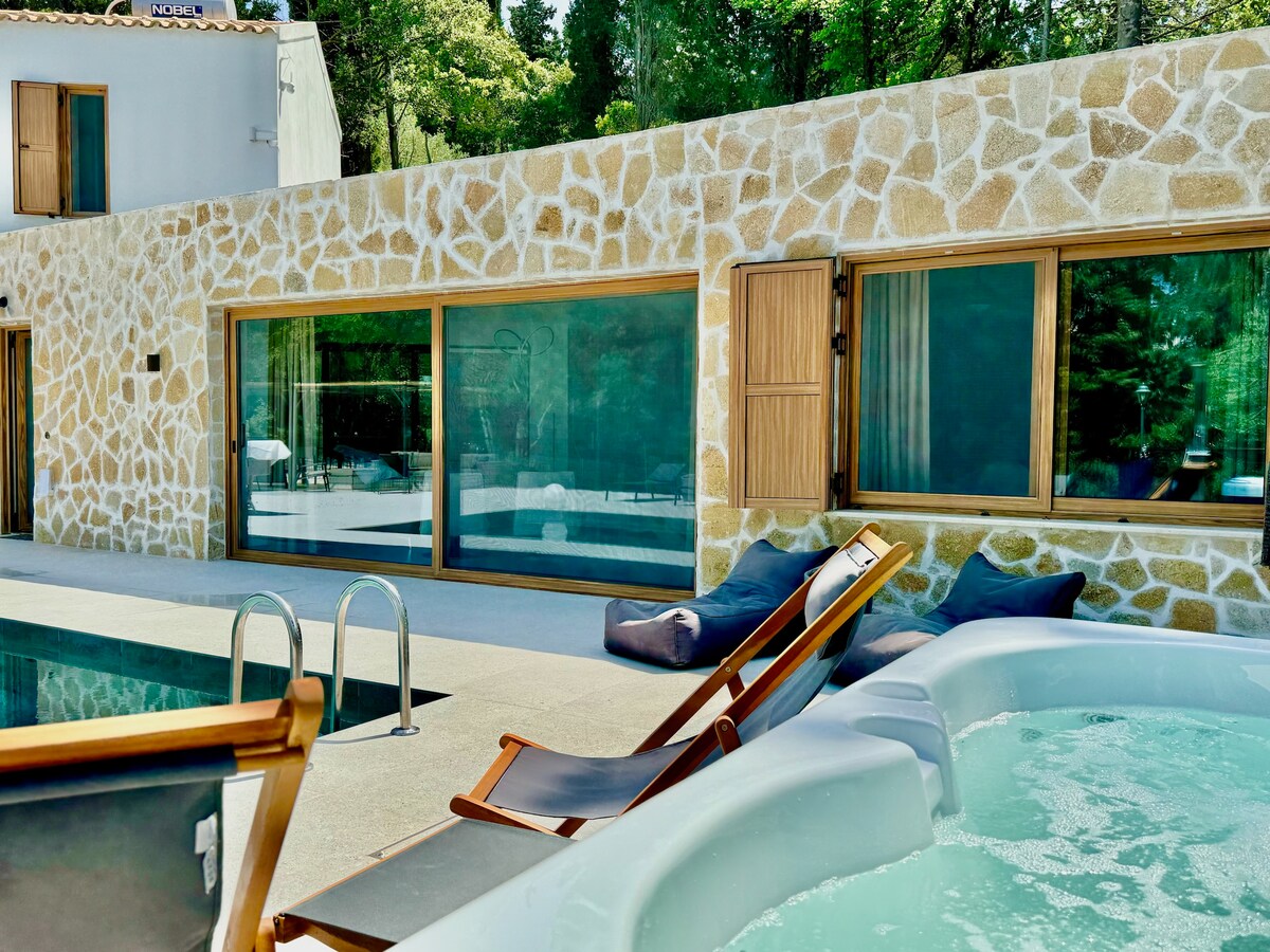 Relajate en esta encantadora casa de piedra ubicada en la tranquila zona de Glyfa, en Corfú. Disfrutá de impresionantes vistas al mar desde la terraza o sumergite en el jacuzzi privado al aire libre mientras se pone el sol. Perfecta para parejas o familias pequeñas, la casa ofrece una mezcla de carácter tradicional y comodidad moderna, a poca distancia en auto de las playas y las tabernas locales.