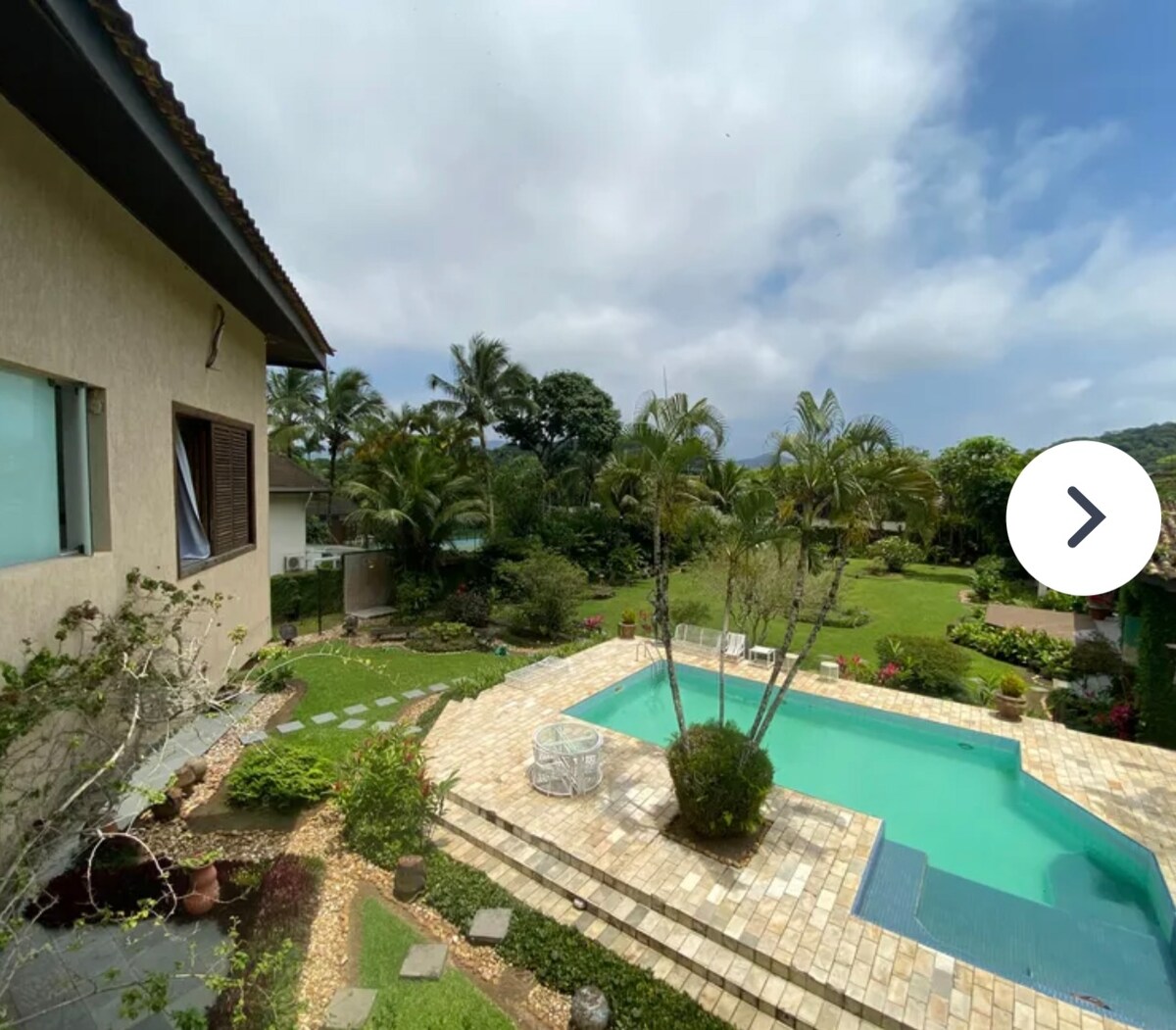 Casa com 1200m2 , piscina c hidromassagem cascata e luzes noturnas 5 suítes Lareira sala estar e lounge externo c braseiro Área gourmet fogão e forno a lenha churrasqueira Área de laser c mesa de bilhar e Ping Pong jogos tabuleiro e academia pequena bike spining Casa a cerca de 250 mt da praia 2 quadras e meia Casa principal 2 suítes king e Queen e 1 qto 2 camas solt Casa hóspede 2 quartos casal e 1 de solteiro e 2 banheiros Ar condicionado e ventilador teto em todos os quartos