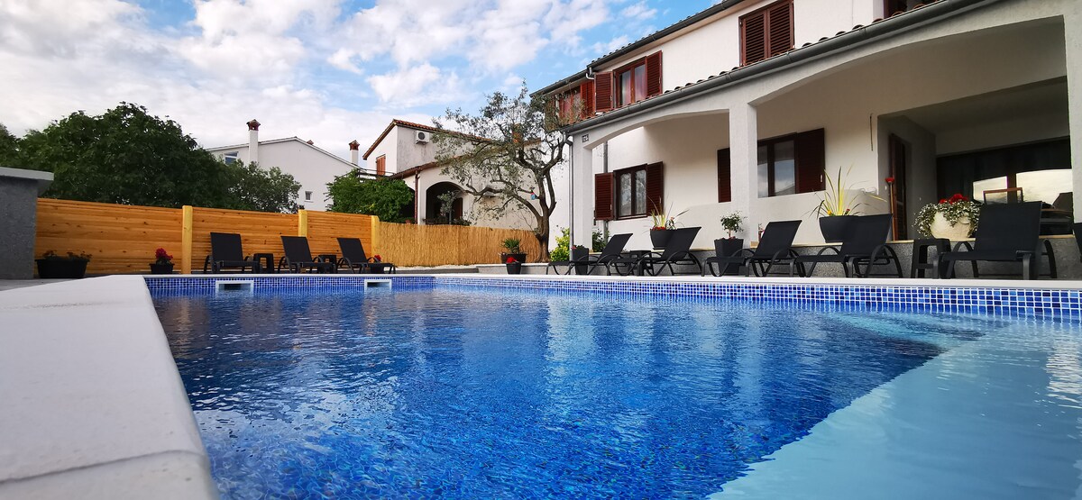 Un encantador apartamento de tres estrellas de 130 m² ideal para familias y parejas . En la casa hay tres apartamentos separados que te ofrecen acceso completo a la encuesta de natación de privacidad y todo lo necesario para unas relajantes vacaciones con zona de barbacoa, estacionamiento privado,internet,aire acondicionado. Ubicado en el centro de Peroj a solo 5 minutos en coche de Fazana y a 2 minutos en coche de la playa más cercana a la que se puede llegar también a pie con jardín y vistas al balcón cerca de las islas Brioni, un hermoso parque nacional accesible desde Fazana.