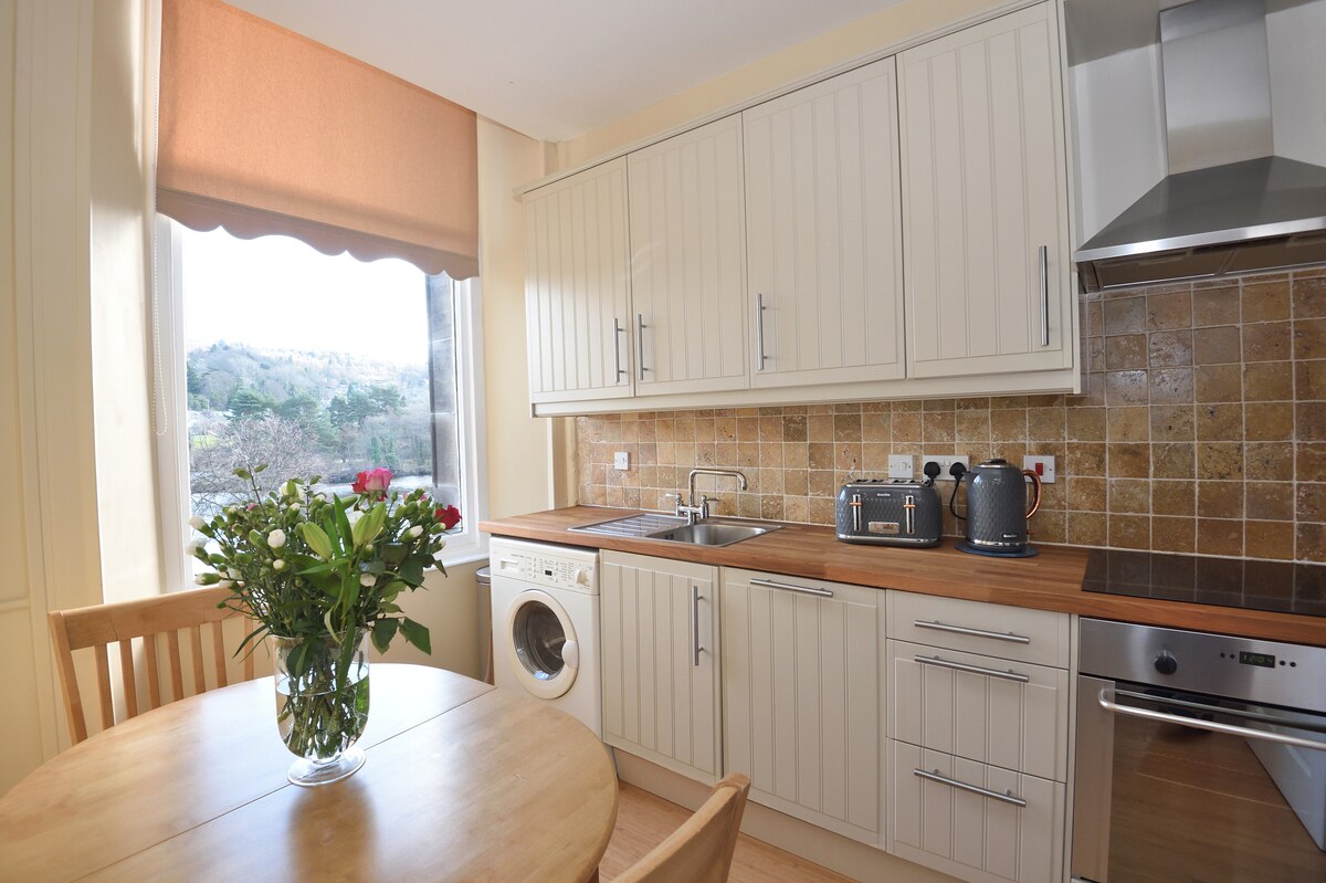 El apartamento Riverside forma parte de un edificio histórico de categoría B, de alrededor de 1850, que alberga formalmente el museo de historia nacional de Perthshire y ofrece impresionantes vistas al río Tay hacia Kinnoull Hill y más allá. Relájate y observa las aves y la vida silvestre residentes mientras fluye el río más largo de Escocia. Con suerte, verás castores, ya que Perth tiene la única colonia de castores del centro de la ciudad en el Reino Unido. El apartamento del primer piso está en una zona céntrica.