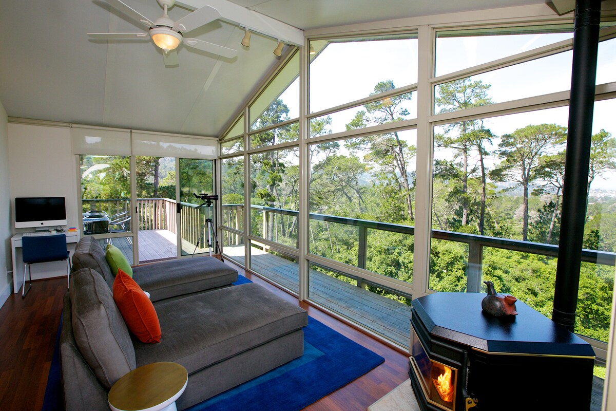 Stay in our Carmel Rustic Cabin along with your dogs (see dog fee below) while shopping, visiting local wineries and restaurants or just walking your dog off-leash along Carmel's white sandy beach. Hidden in the woods, our rustic cabin is like a treehouse with all the amenities and minutes from downtown and the beaches. FYI the coast drive is now accessible between here and LA, but may be shut down during stormy weather, so be sure to follow local weather reports or just call Caltrans.