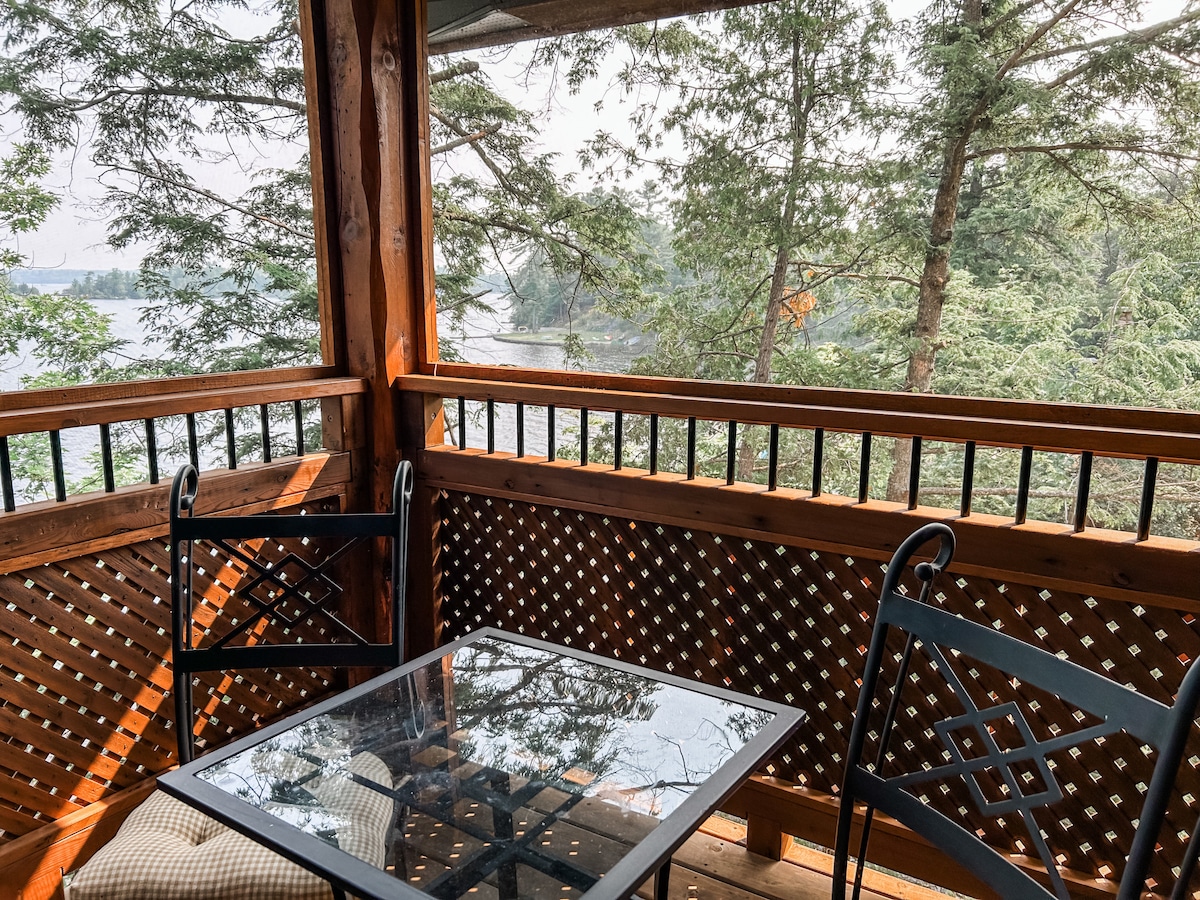 Prime location overlooking Upper Stoney Lake at Crowe's Landing, in Ontario, Canada's Kawartha Lakes area, this lovely two-bedroom, two bathroom lakeside suite features living room/kitchen area, impressive stone fireplace with wood burning stove, private screened in balcony/deck, beautiful lake/sunset view. The master bedroom with king bed, and bathroom-on main floor. Upstairs is a second bedroom with a long double bed, single bed, and 3 piece bathroom.