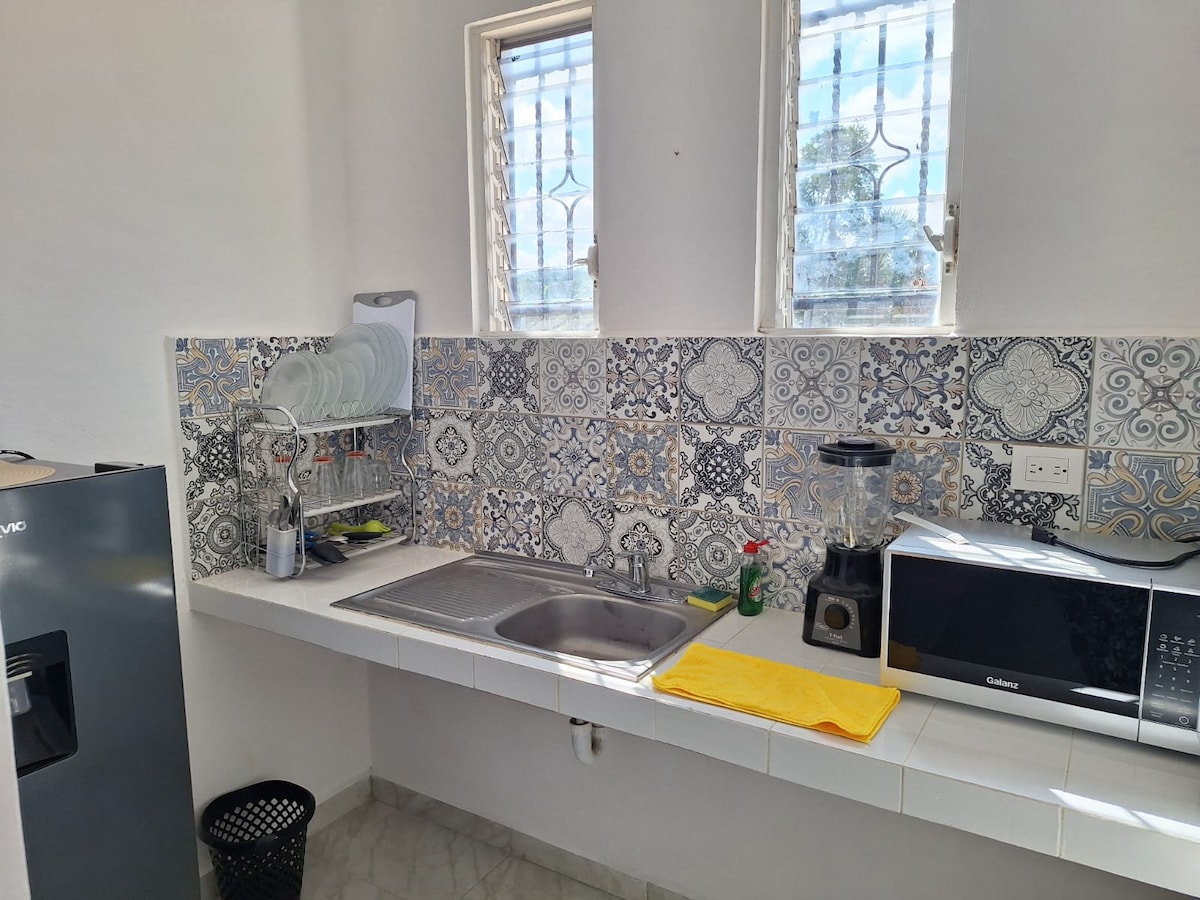 Pequeño y confortable departamento. Ofrece un espacio fresco y agradable para descansar después de un caluroso día. Ubicado en pleno Centro Histórico, al que se llega a pie y donde podrá visitar la imponente Iglesia de San Juan, tomar un helado en el kiosco y descansar en el Parque Principal como hace la gente local.