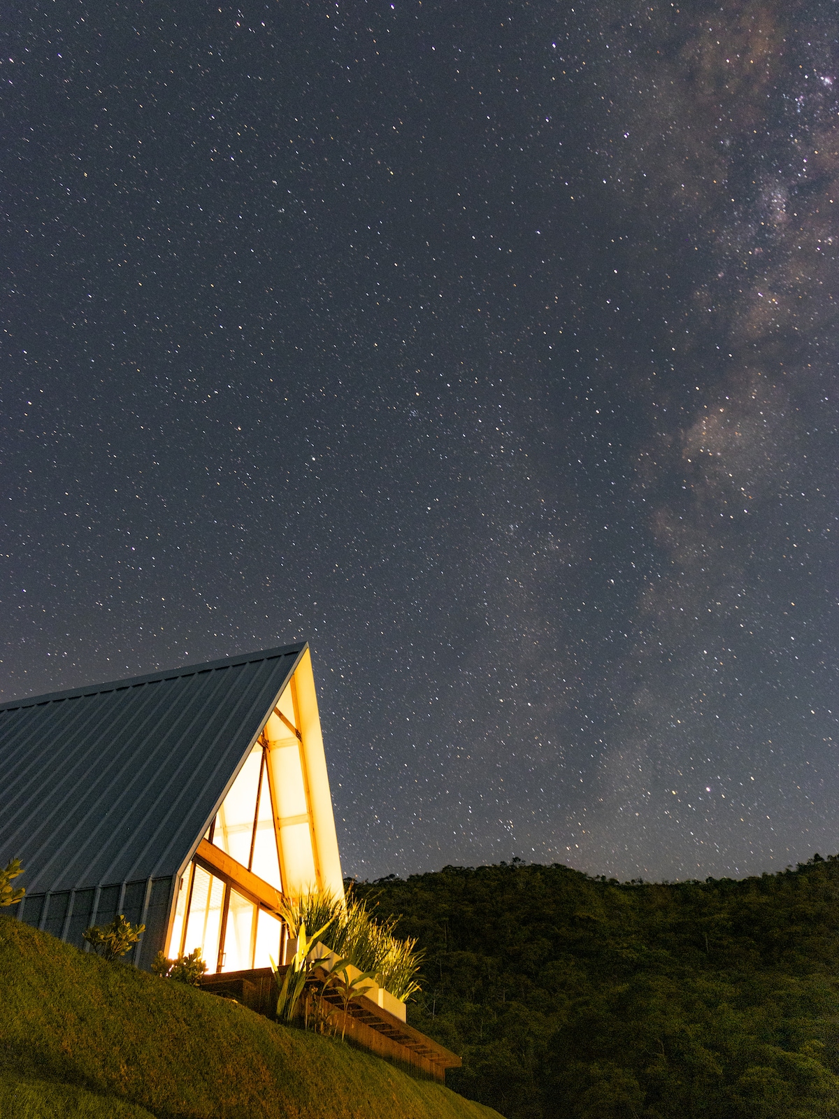 Este lugar único tem um estilo próprio. A cabana foi carinhosamente planejada para propiciar conforto em meio a vegetação. Grandes janelões de vidro fazem a separação do ambiente interno do externo, mas, sem perder a privacidade, pois há cortinas com blackout. Na área externa há um amplo deck com móveis, rede e churrasqueira. Parte do material utilizado para a construção é de demolição, causando menor impacto no meio ambiente. A decoração é composta por peças feitas especialmente para o espaço.