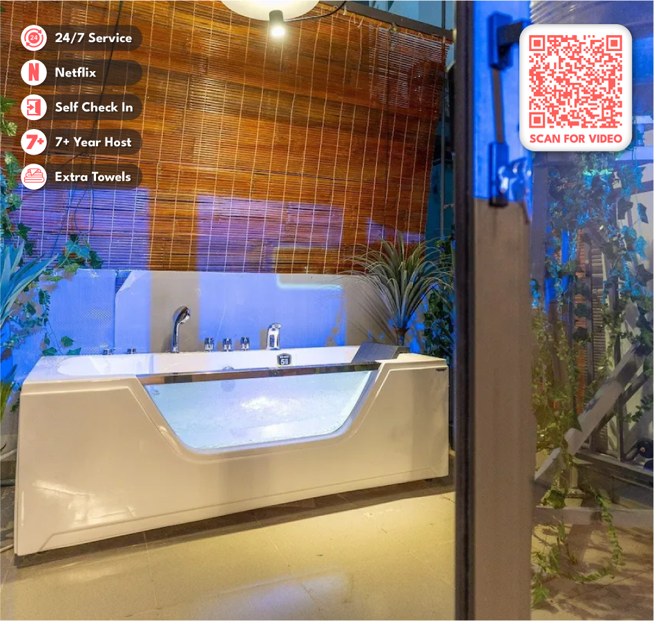 Al entrar en nuestra unidad tropical, sentirás un ambiente cómodo, fresco y único, un alma distinta. Uno de los aspectos más destacados de nuestro apartamento es la vegetación, la impresionante bañera privada, que está rodeada de un exuberante jardín tropical, lo que la hace verdaderamente especial en relajación y aislamiento. Los exteriores de diseño sobresaliente, los materiales de la más alta calidad y la excelente ubicación céntrica nos aseguran que tu estancia en nuestro apartamento sea lo más agradable y memorable posible.