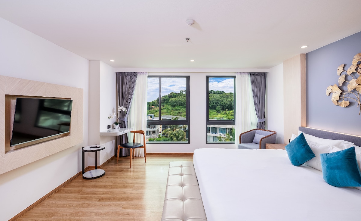 Bienvenido a tu acogedora habitación con una gran cama tamaño KIng y un balcón perfecto para familias o viajeros solteros. La habitación está decorada en un estilo ecológico diseñado individualmente * En el Grand Orlov Hotel, nos esforzamos por crear un ambiente acogedor y acogedor para ti y ofrecerte el mejor servicio para hacerte sentir como en casa, incluso lejos de casa. ¡Reserva esta habitación y disfruta de unas vacaciones cómodas e inolvidables en Phuket!