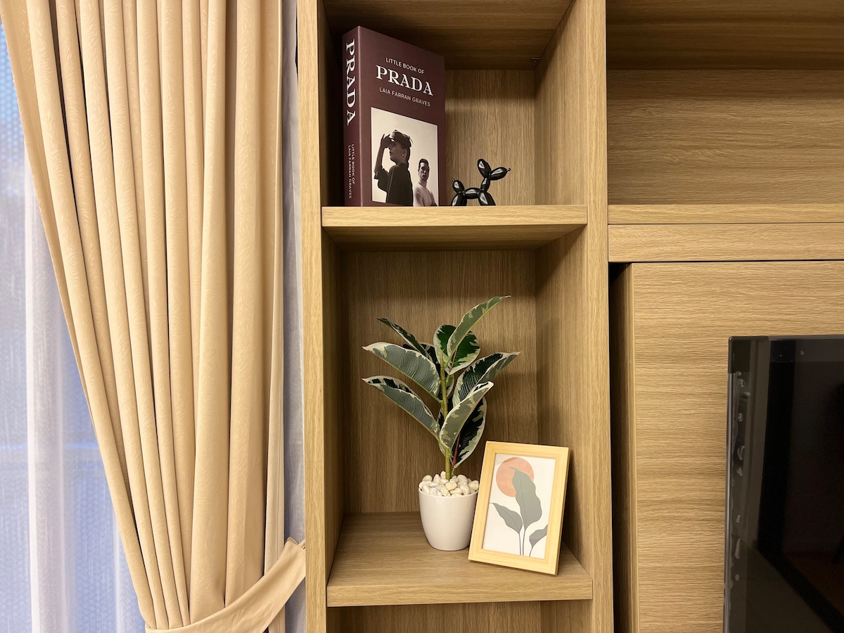 This beautiful Japanese-inspired 55 sqm unit has everything you need for a pleasant stay. The bedroom king-sized bed and personal workspace, and opens onto a spacious semi-outdoor bathroom with a wooden ofuro tub that fits two, and leads to a large walk-in closet. The living room includes a cozy sofa bed and a Ultra HD Smart TV. The kitchen is well-equipped with a microwave, range-hood, electric hob and refridgerator. The large picture window offers a view of the gardens and swimming pool.