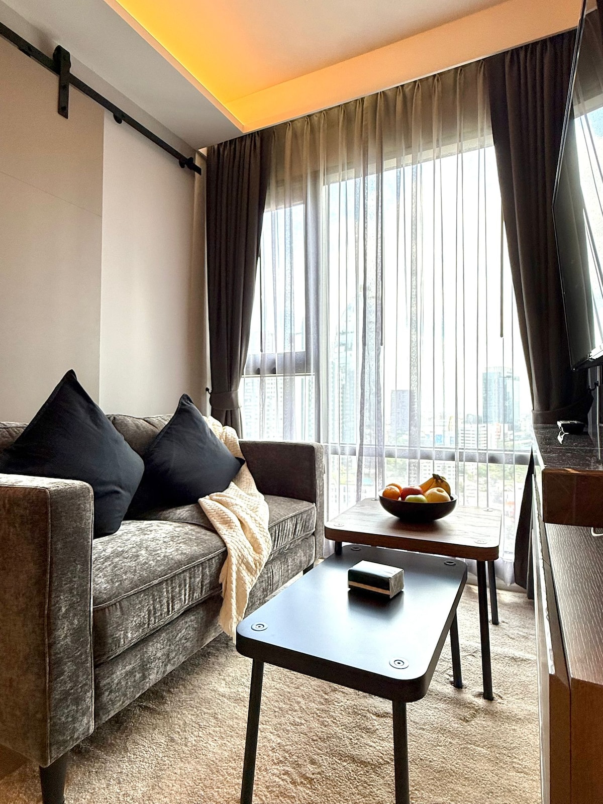 January Promotion | 10+ Years Trusted Host January special rates available. Welcome to this stylish 1-bedroom condo at Sukhumvit 42, just a 5-minute walk to BTS Ekkamai. The location is unbeatable — surrounded by Gateway Ekkamai Mall, Japanese restaurants, cafés, supermarkets, cinemas, and Bangkok’s favorite lifestyle spots. The unit features a bright living room, cozy bedroom, full kitchen, and large windows, making it perfect for couples, business travelers, and long-stay guests.