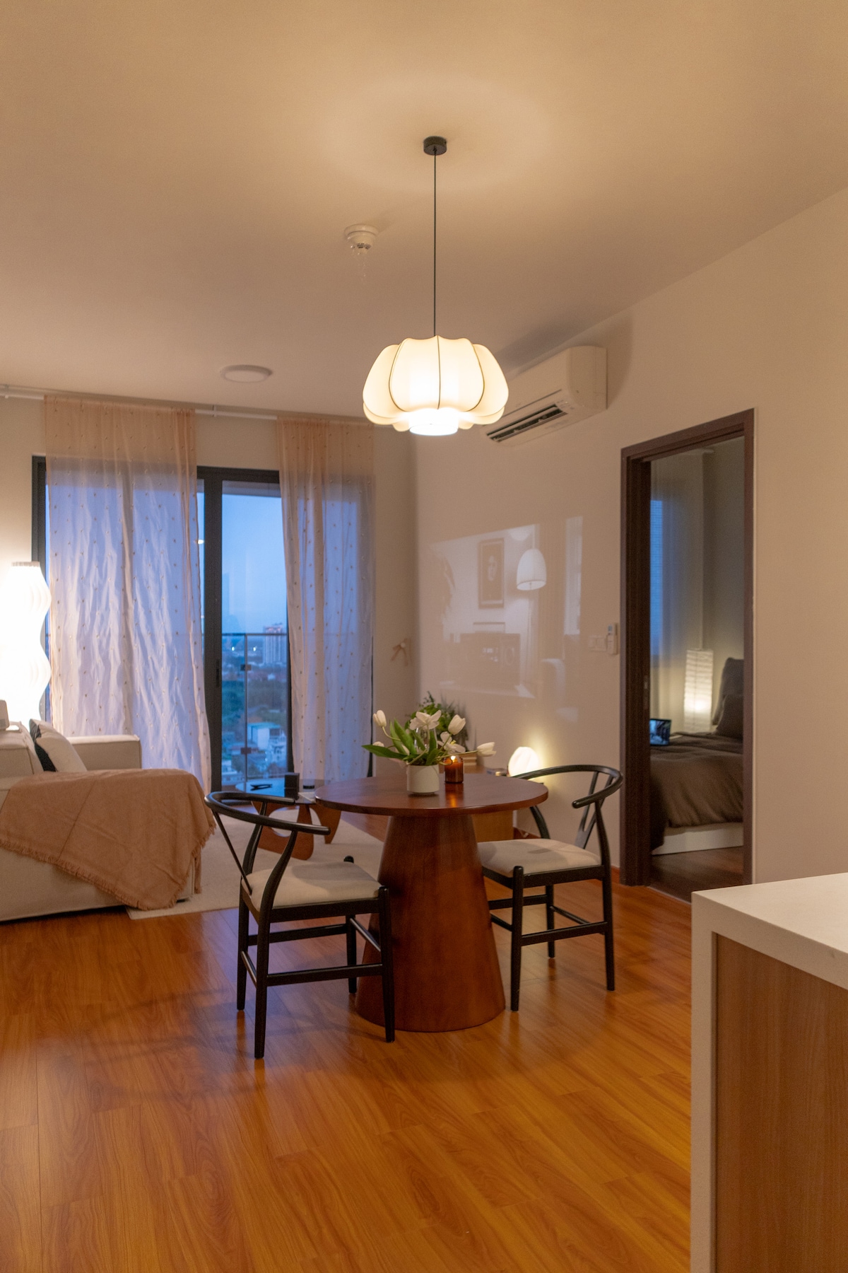 Un elegante y cómodo apartamento de 85 m2 en Hung Phuc Happy Residence Premier situado en el corazón del distrito 7, Phu My Hung, a pocos pasos de las mejores tiendas, restaurantes y comodidades. La parada de autobús más cercana está enfrente. Vecinos muy educados y tranquilos rodeados de parques verdes y hermosas villas. Decorado en estilo moderno Japandi x Wabi sabi con un enfoque en materiales naturales y líneas limpias. Una gran escapada o incluso vacaciones para aquellos que quieran experimentar cosas nuevas.