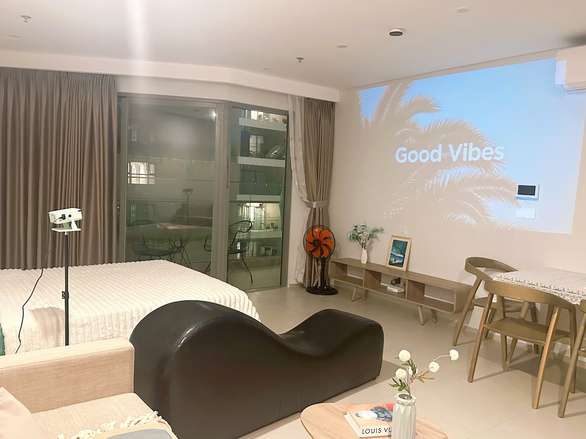 A modern, well-equipped studio apartment just minutes walking from Back Beach (Bai Sau). Walking distance to Lotte Mart, pharmacy, local market and convenience store. The Apartment is a perfect fit for a family of 4 with one bedroom with extra bed, kitchen, huge living room, comfortable shower, refrigerator, dinning table, working desk, closet and huge Wifi TV with Youtube.