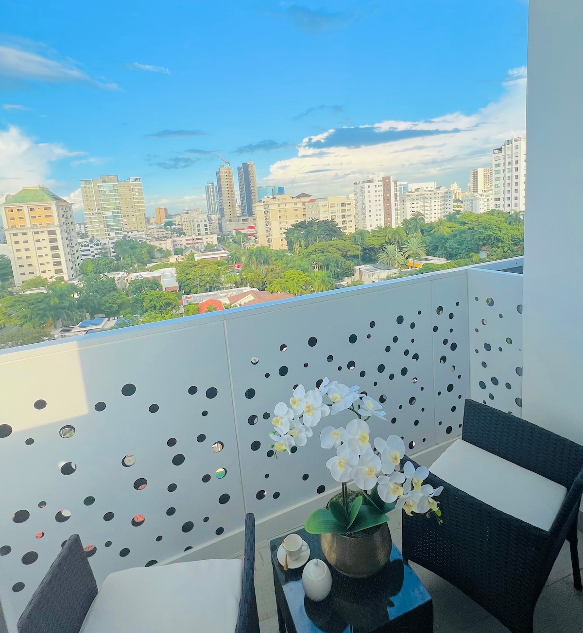Vive una experiencia única en nuestro cómodo y lujoso apartamento en la exclusiva area de Piantini, Dormitorio con cama king, 2 televisores inteligentes 55'', WIFI alta velocidad, Full Linea blanca, cocina y area de lavado, hermosa terraza con una vista maravillosa. También podrás disfrutar de una Hermosa area social con PISCINA, BBQ y GYM o salir a disfrutar de una tarde de Shopping y las diferentes gastronomías que te ofrecen los lujosos restaurantes que se encuentran al rededor del are