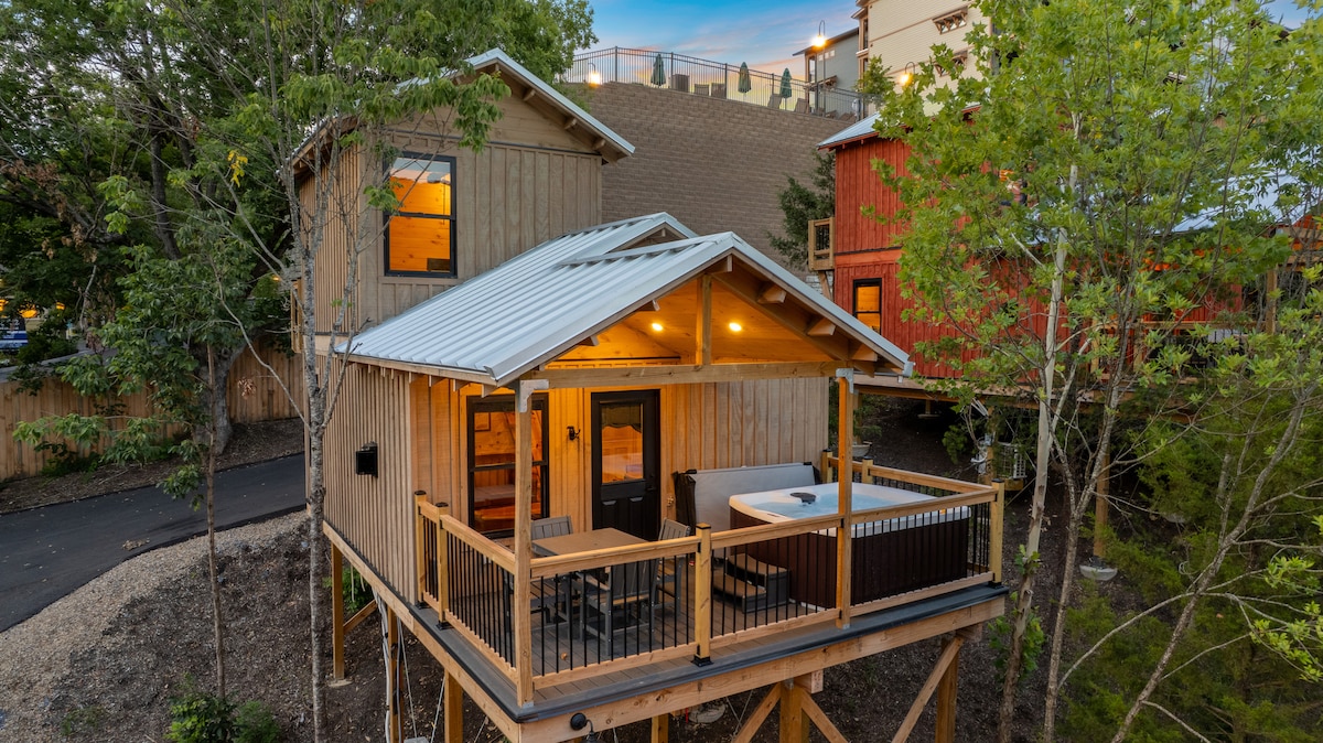 ✅Jacuzzi Vistas a✅ la montaña ✅Zona para fogatas (se proporciona propano) Chimenea ✅eléctrica. Habitación ✅húmeda (bañera profunda grande y ducha) ✅Blackstone Grill (propano incluido) ✅Gran porche techado con comedor al aire libre ✅Nueva cabaña moderna-compacta (600 pies cuadrados) ✅ Comunidad privada cerrada con seguridad ¡Piscina✅ comunitaria (de temporada), canchas de tenis, cancha de pickleball y parque infantil! ✅1 dormitorio (cama king)/1 baño con sofá cama (queen) ✅¡Lavadora/Secadora, lavavajillas, horno y nevera! Juegos de mesa✅ vintage Tableros ✅de cornhole ✅ Reproductor de discos