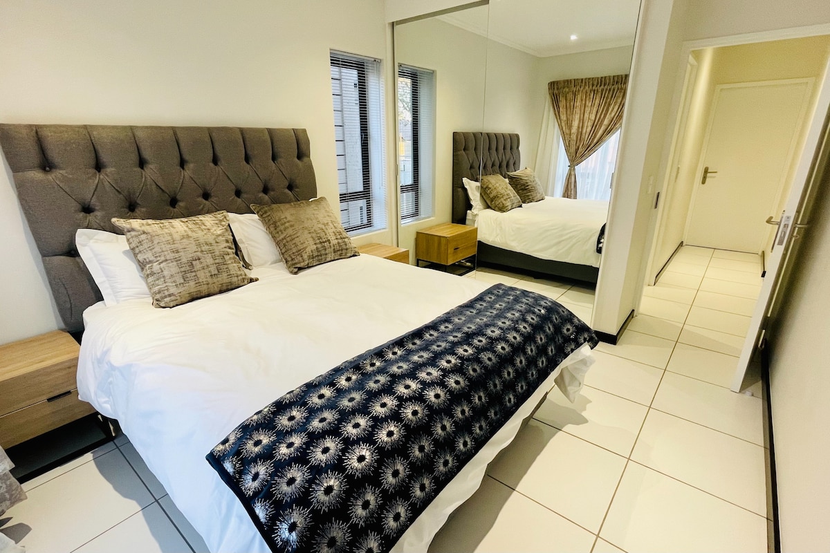 Olvídate de las preocupaciones en este gran alojamiento: ¡es un oasis de tranquilidad! Está ubicado en un tranquilo barrio residencial de Sandton, a un tiro de piedra del Monte Casino, el centro comercial Fourways y el aeropuerto de Lanseria. El apartamento cuenta con dos dormitorios con baño y una amplia zona común. Hay energía de respaldo para mantener el wifi conectado durante el apagón, y una hermosa casa club y área de ejercicios en la que puedes escapar temporalmente de la realidad. Ven a escapar del bullicio del centro de la ciudad en esta encantadora casa familiar, apta para cuatro personas.