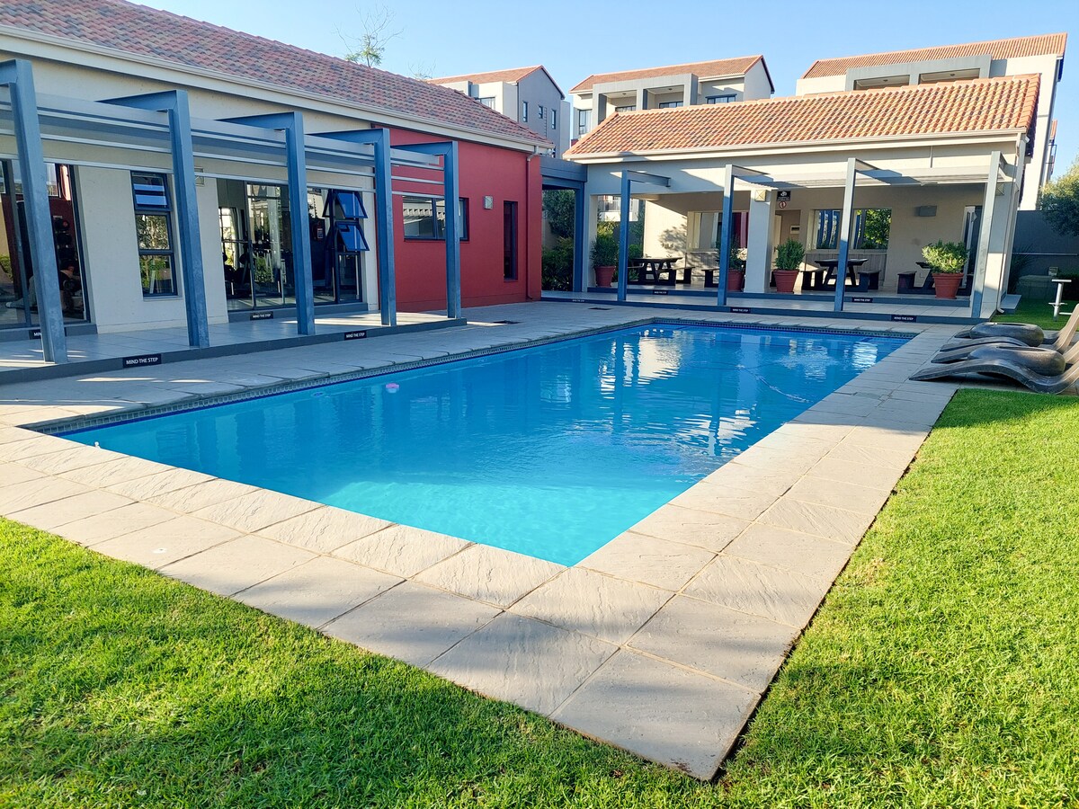 Departamento de 1 dormitorio en planta baja, luminoso y espacioso, en Fourways. A solo 2,1 km del centro comercial Fourways, cerca de Montecasino y de los mejores lugares de compras. Relajate en un jardín soleado con un braai. Cocina. Cama queen extra larga, baño con bañera y ducha. El inversor mantiene la televisión y el wifi funcionando durante el corte de energía. Wifi gratuito, Smart TV con Netflix y YouTube. Disfrutá de la pileta y el gimnasio comunitarios de la propiedad. Ideal para parejas, amigos o estadías de negocios. Reservá tu estadía y disfrutá de comodidad, conveniencia y un toque de lujo.
