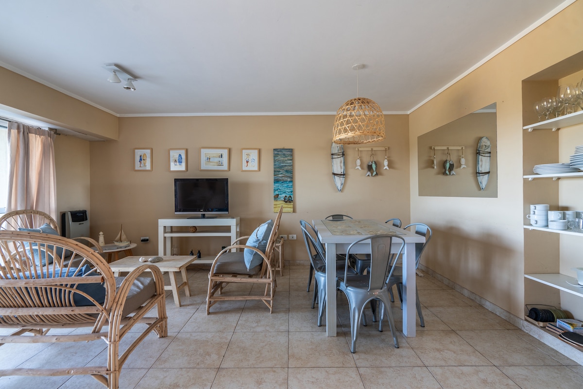 New and modern apartment with an incredible ocean view. One block from the sea and the heart of Pinamar downtown. The complex has an outdoor pool, heated indoor pool, gym, yacuzzi, sauna, cinema room, table tennis. You can also enjoy a private yacuzzi overlooking the sea. There is a laundry in the building.