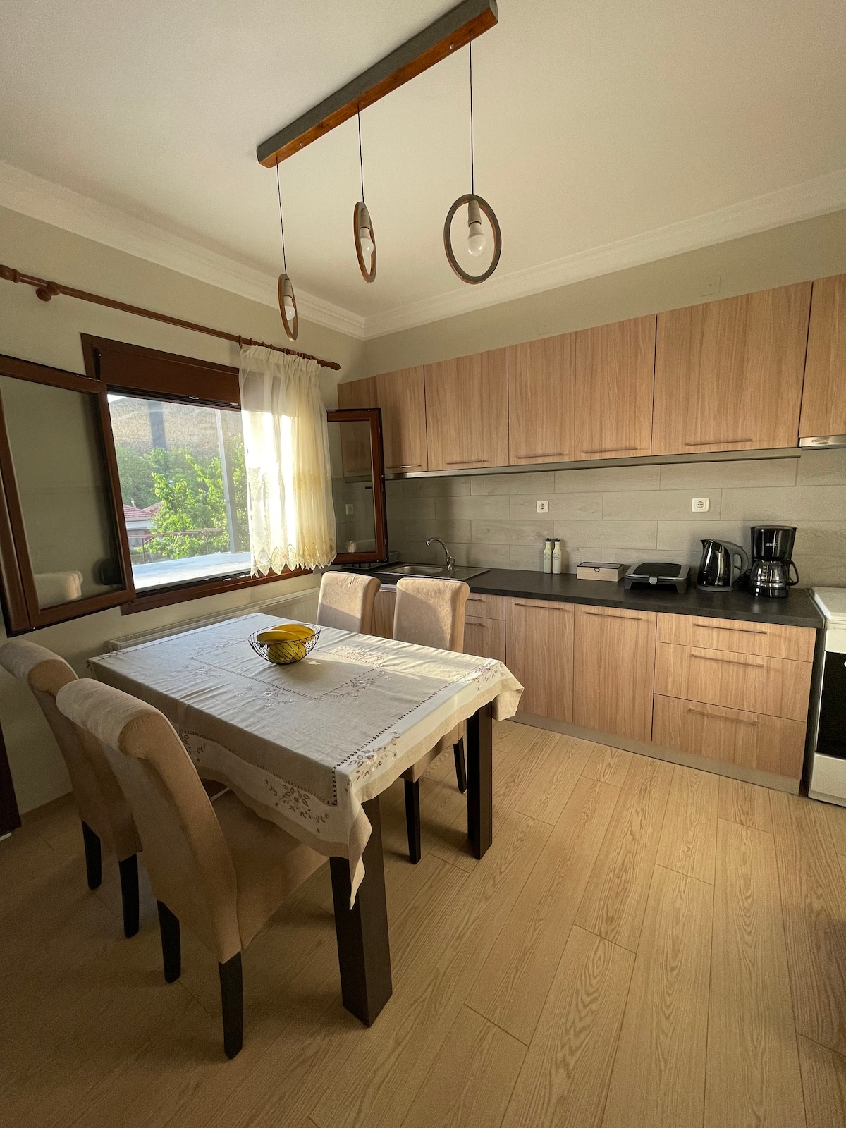 ¡Ubicada a solo 15 minutos de la ciudad de Trikala, esta propiedad, sacada de un cuento de hadas y enclavada entre una exuberante vegetación, te espera para que te escapes de la realidad! Perfecto para una familia o un grupo de amigos, ¡ha sido decorado con respeto a la tradición y la naturaleza! ¡No pierdas una oportunidad única para una escapada! ¡Nuestros huéspedes disponen de wifi gratuito y aparcamiento en la calle!