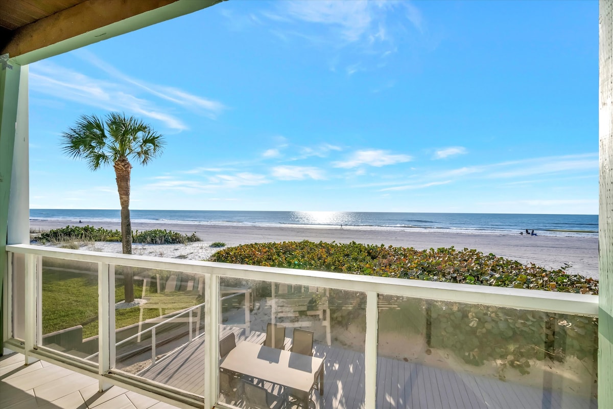 Walk straight from your door onto the sand. This rare ground-floor, direct beachfront one-bedroom cottage sits right on the Gulf of Mexico with unobstructed water views and effortless beach access — no stairs, no elevators, no roads. Enjoy your private beachfront patio, a cozy and newly remodeled interior, and your own stretch of sand with lounge chairs just steps away. Perfect for couples or longer stays looking for a relaxed, front-row beach experience in Indian Shores.