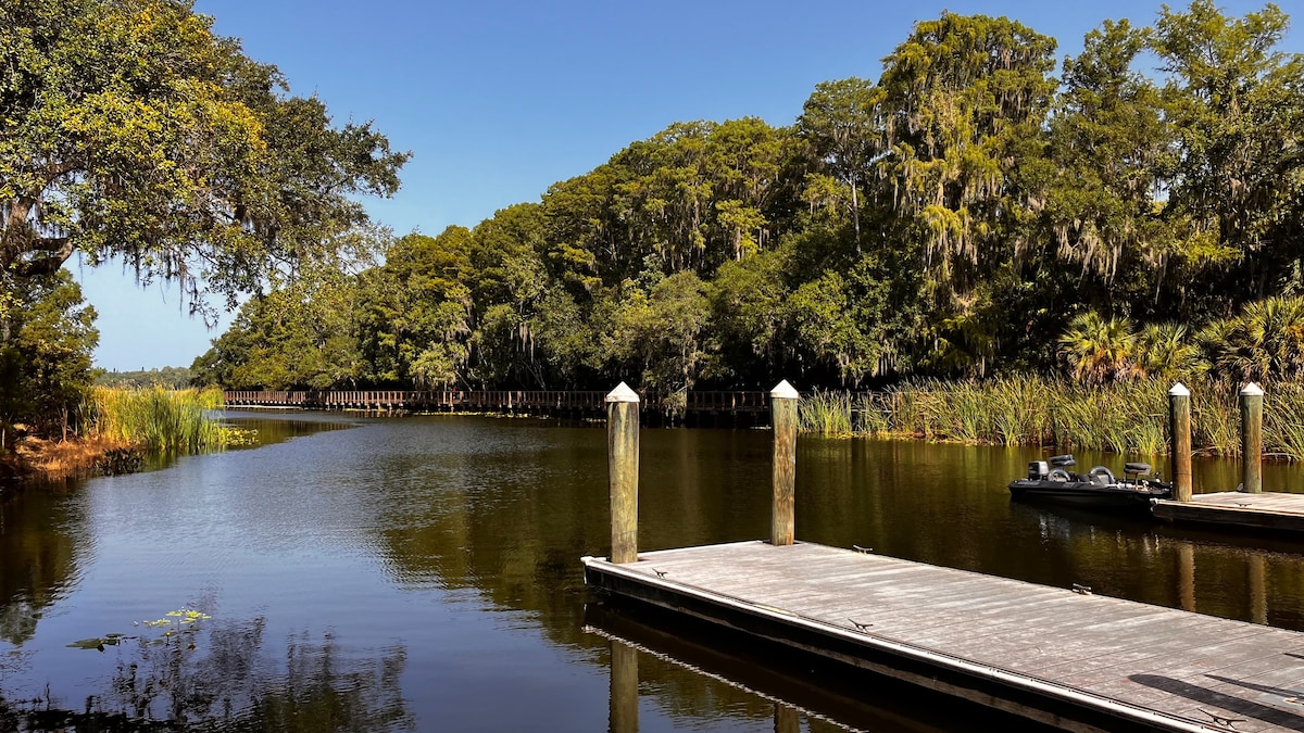 - Frente al mar estilo resort. - Independiente. - Jacuzzi. - Vistas al amanecer/atardecer en el muelle. - Kayaks gratuitos. - Internet/cable de YouTube. - Televisor inteligente de 65 pulgadas. - Amplio dormitorio con cama tamaño king, vestidor y TV de pantalla plana. - Lavadora y secadora en el alojamiento. - Espacio de trabajo designado. - Se admiten mascotas. - Patio privado vallado. - Aparcamiento gratuito para 2 coches/barcos. - Ubicación céntrica (playas, restaurantes, Tampa, St. Pete's, Safety Harbor, Dunedin). - A 11 minutos de la sala de eventos Ruth Eckerd. - Limpieza impecable. - Zona de café. - Comedor.