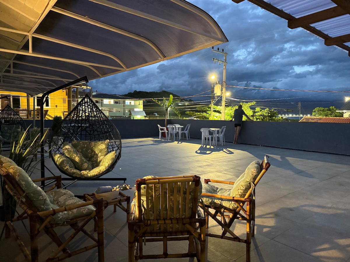 ¡Relájate en este espacio tranquilo y elegante! Situado en la impresionante playa de Guarda do Embaú, está a 10 minutos a pie de la playa, a 57 km de Florianópolis y a 34 km de Garopaba, este hermoso loft está situado en una calle tranquila, donde puedes descansar con el sonido de los pájaros en una cama muy cómoda. El sitio es súper nuevo y tiene muebles a medida, televisión, nevera, estufa, baño y estacionamiento en el patio.