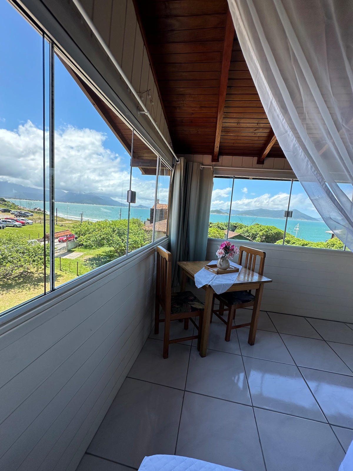 El apartamento está situado en una zona tranquila en Praia da Pinheira a 700 metros de Praia de Baixo, a 2 km de Praia de Cima y a 2,5 km de Guarda do Embaú. Tiene capacidad para 2 adultos y 1 niño; dispone de una cocina completa con fogones, horno eléctrico, microondas, tostadora, nevera, cafetera y licuadora. Sala con sofá cama y TV. Un dormitorio con cama doble, armario, espejo grande y ventilador. Baño con bañera de hidromasaje y ducha eléctrica. Además de un amplio balcón.