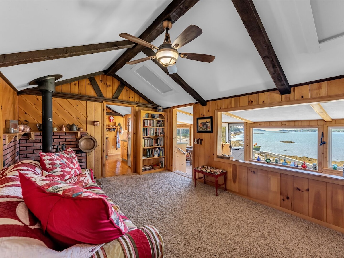 Esta casa de madera privada recién renovada se encuentra justo al lado de la orilla del mar. Pisos radiantes con todos los electrodomésticos nuevos y encimeras de granito. Duchas de spa en ambos baños. Un dormitorio grande con cama tamaño king y dos futones de lujo Queen para los huéspedes. Chimenea de piedra. Lavadora y secadora nueva. Parrilla de carbón en el exterior y mesa de pícnic con vistas al mar. Se admiten mascotas, hay camas para mascotas y jaula disponibles.
