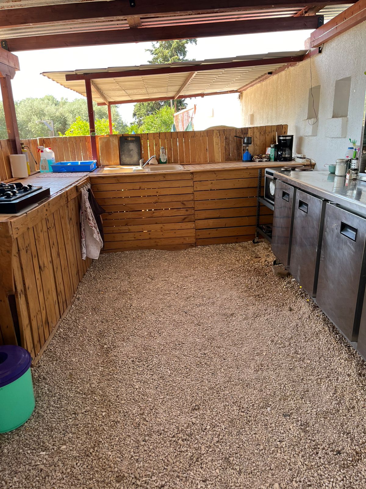 La casa fue construida antes de 1940 y en ese entonces solía ser la casa del maestro del pueblo. El sótano era el depósito de la resina. Solo en 1975 mi abuelo, Dimitris, pudo comprar la casa y el sótano también, para usar todo el edificio como almacén. Luego, en 2019, mi familia decidió transformar el piso de arriba como una habitación de Airbnb y el sótano como trastero para el vino y el aceite.